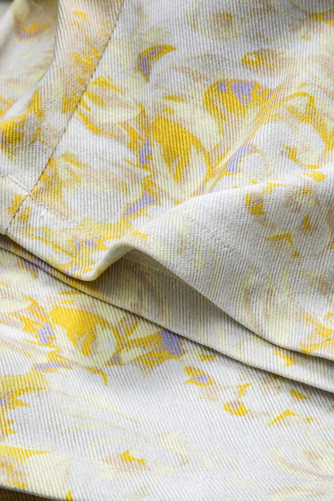 Abstract Printed Denim Button-Pocket Wide-Leg Trousers