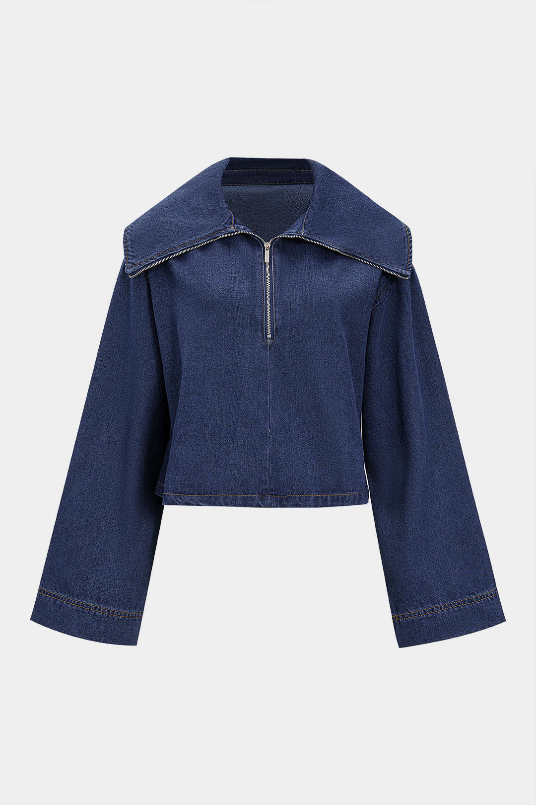 Home / DENIM / Denim Long - Sleeve Zipper Top