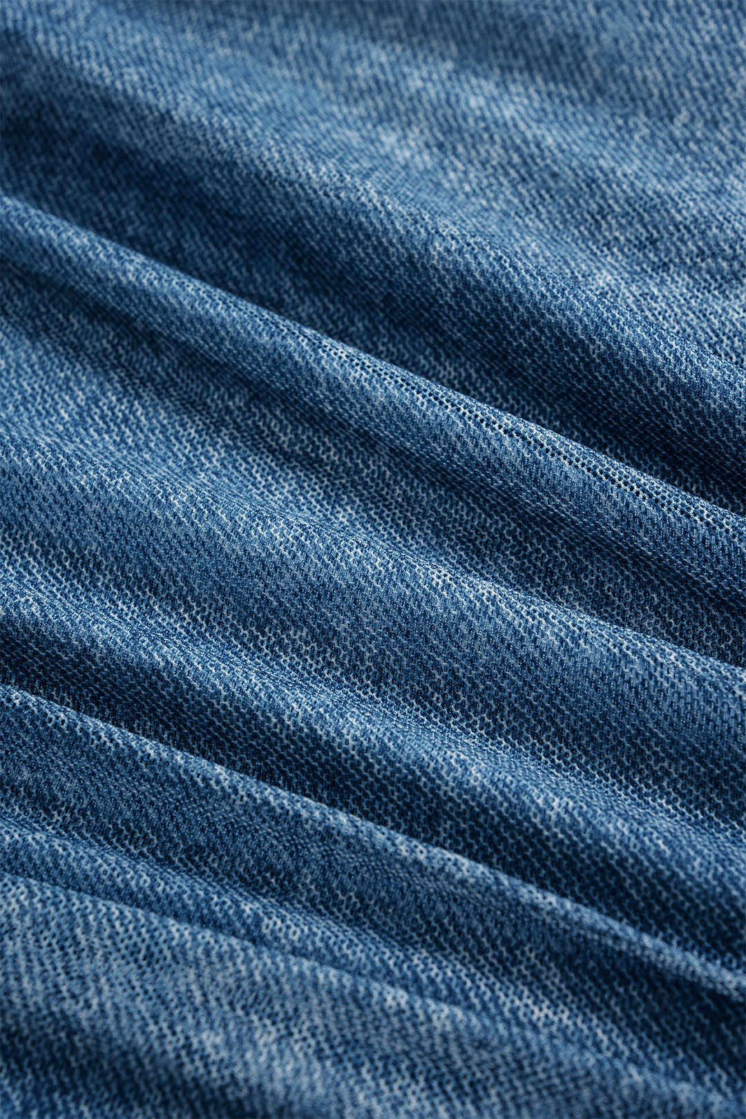 Denim Print Asymmetrical Draped Cowl Halter Neck Sleeveless Bodysuit