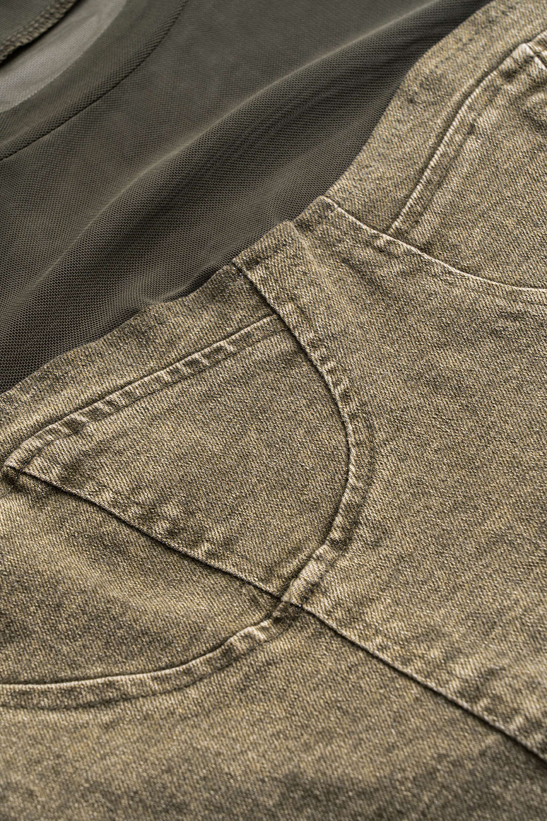Contrasting Print Mesh and Denim Patchwork Short-Sleeve T-Shirt