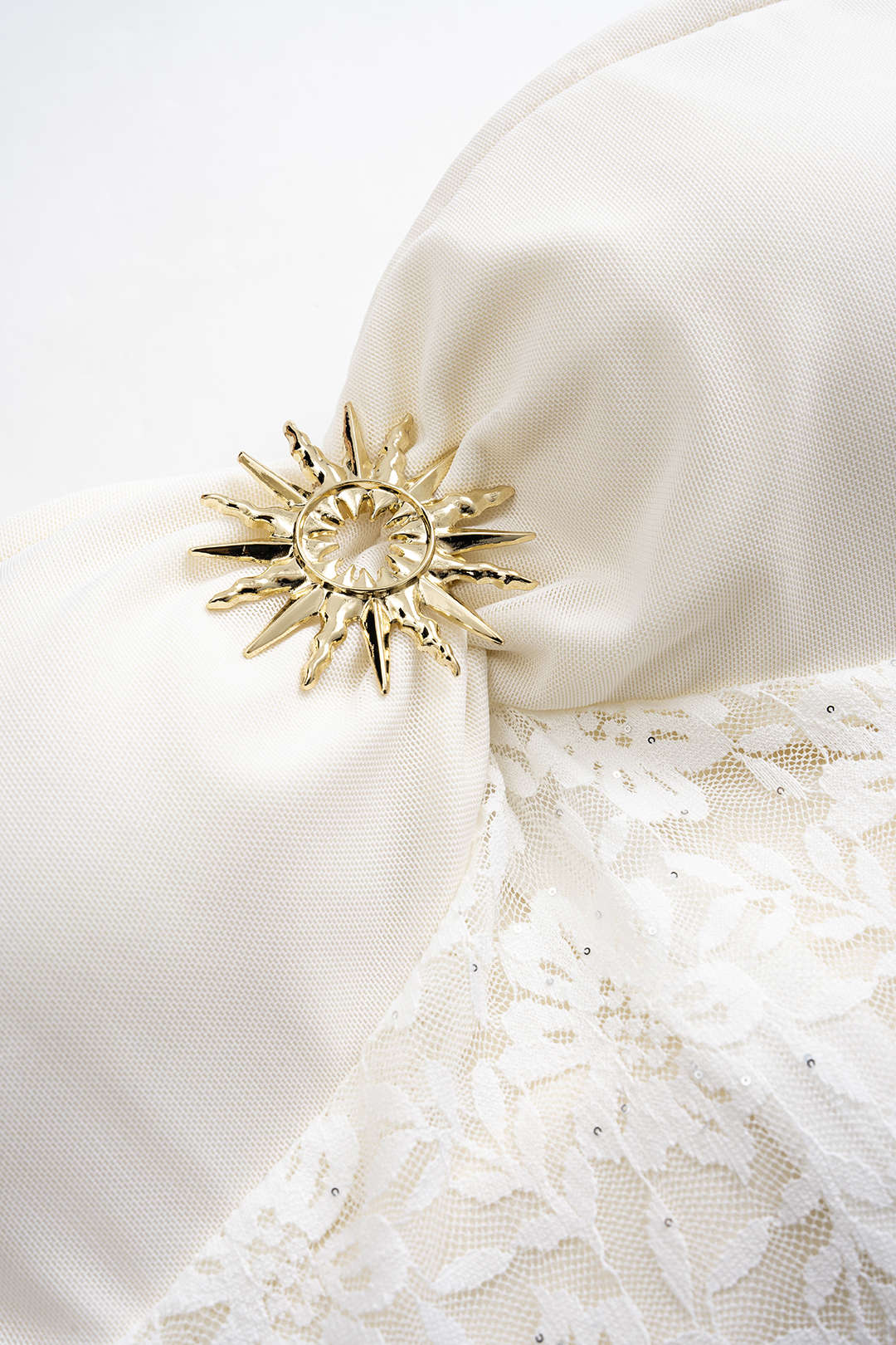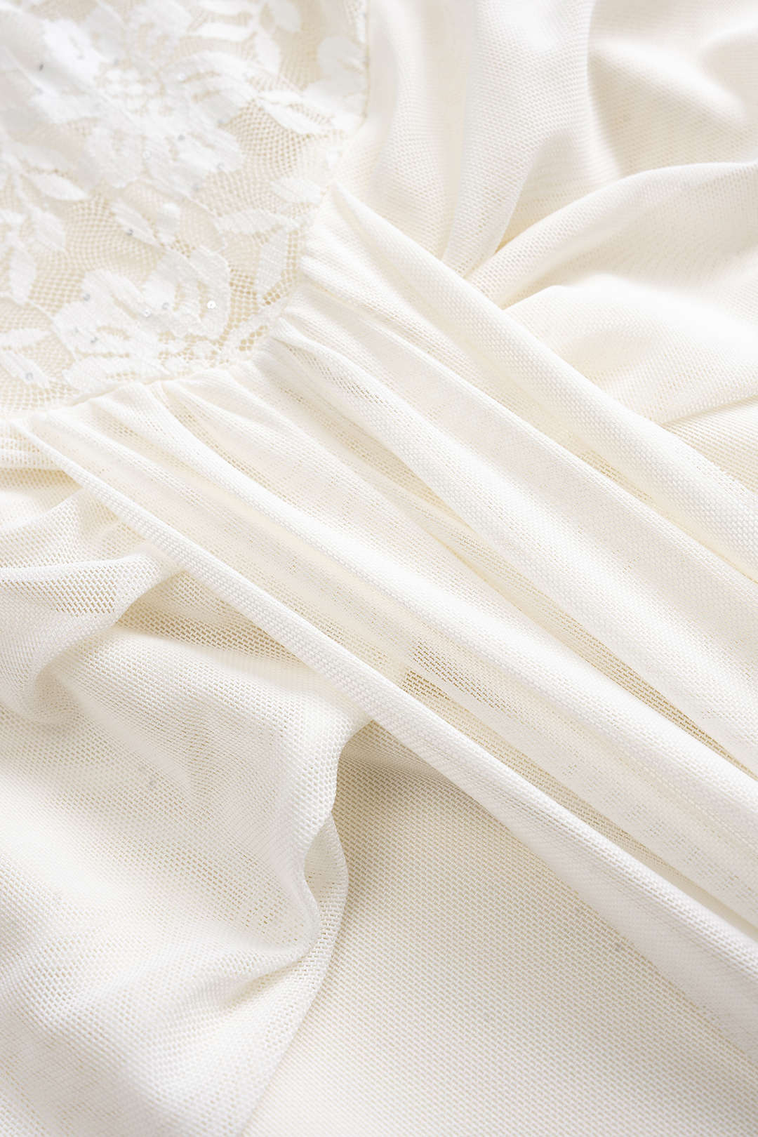 Off-the-Shoulder Mesh Patchwork Metallic Knotted Long Dress
