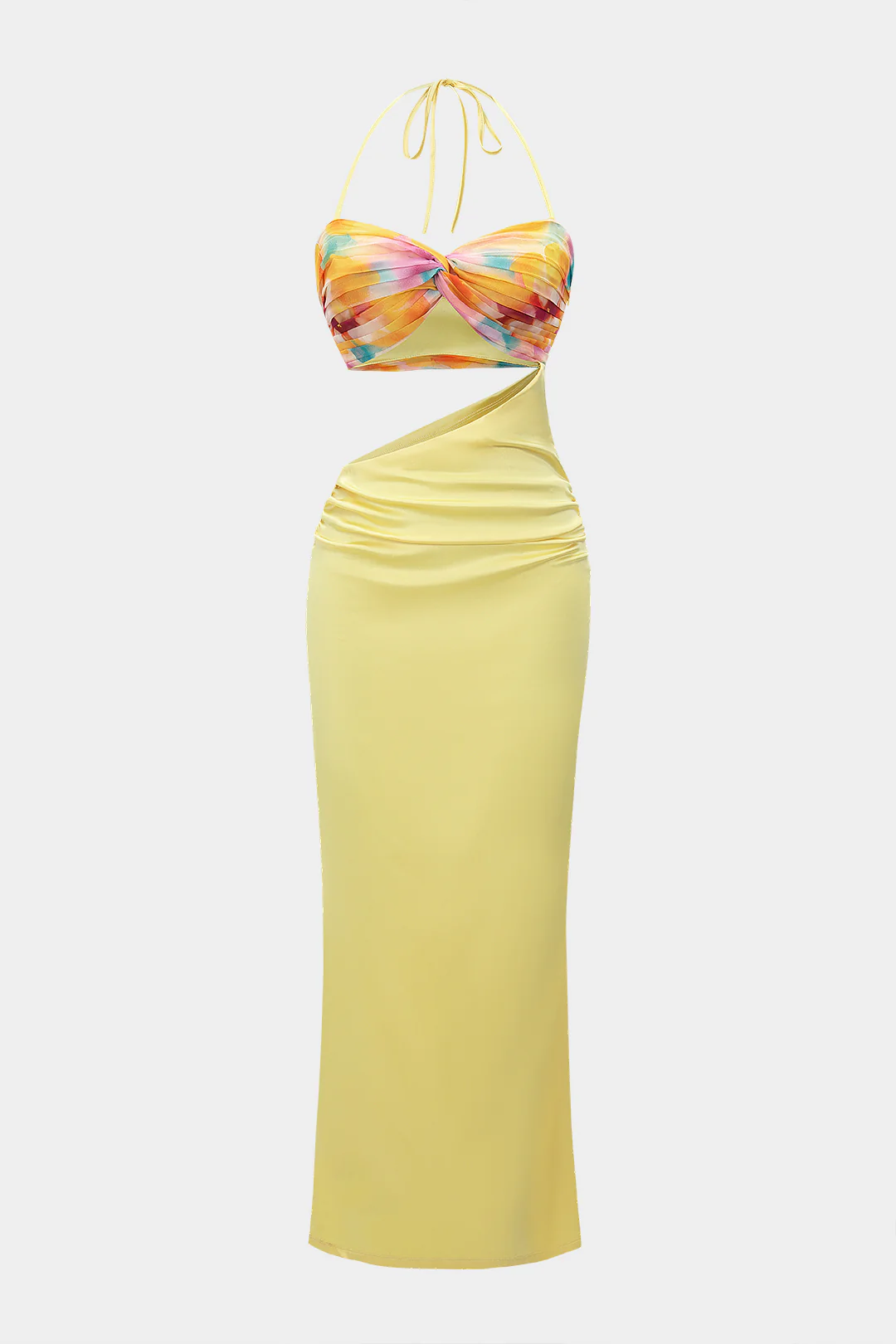 Ombre Print Chiffon Satin Sleeveless Halter Neck Patchwork Maxi Slip Dress