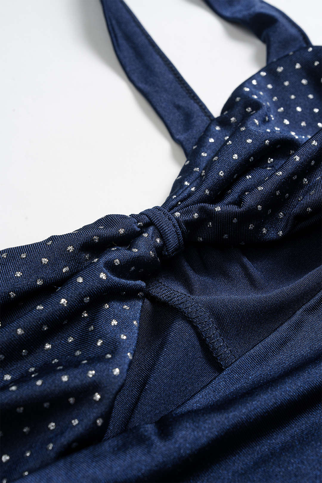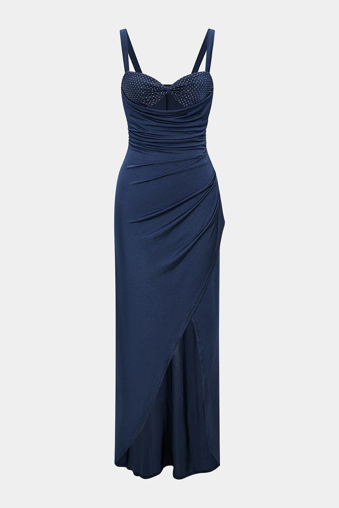 Satin Cut-Out Twist-Knot Ruched Side-Slit Sleeveless Maxi Dress