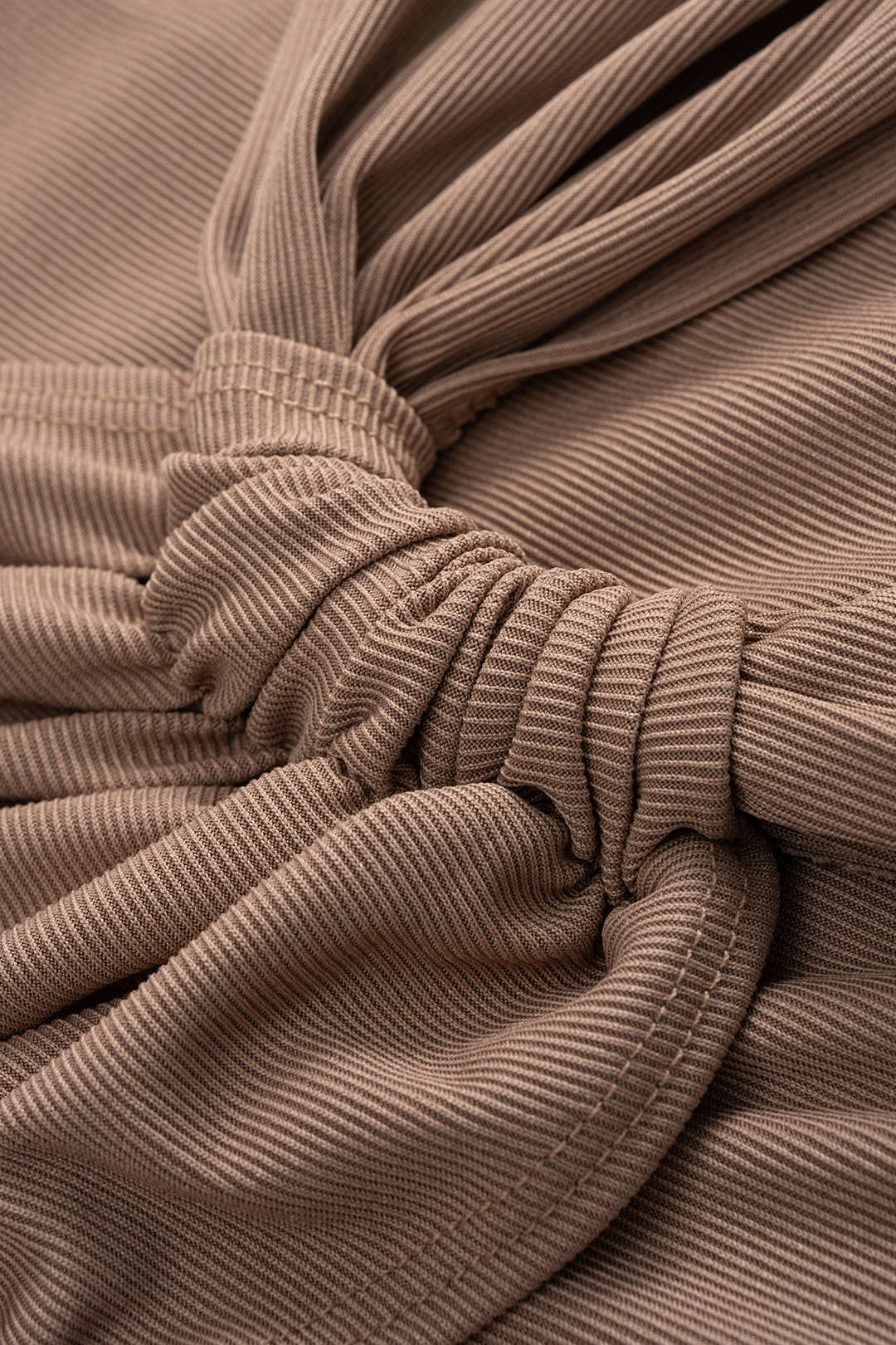 Strap-Trimmed Square Neck Ruched Sleeveless Maxi Dress