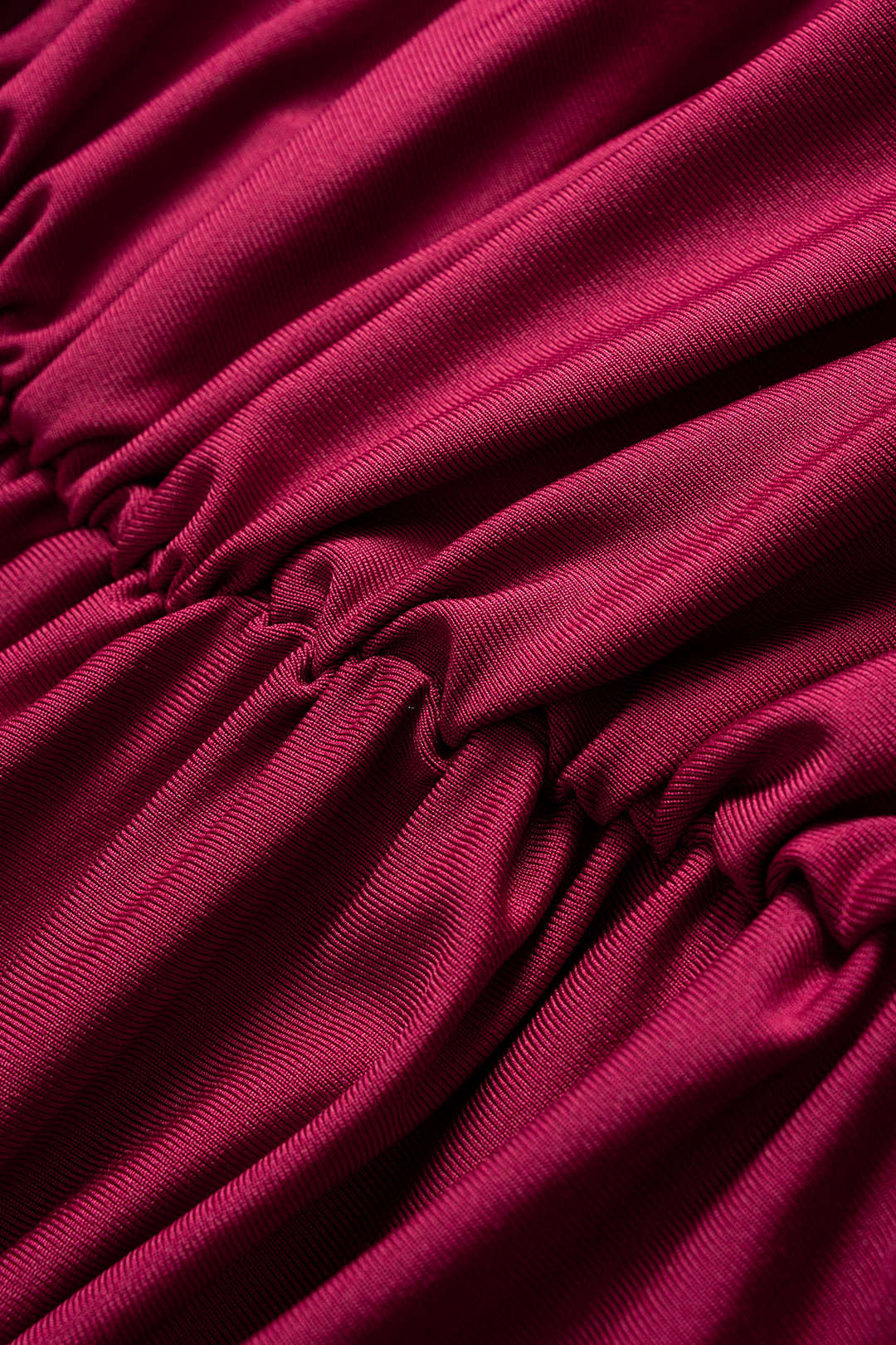 Off-the-Shoulder Patchwork Ruched Long-Sleeve Maxi Dress