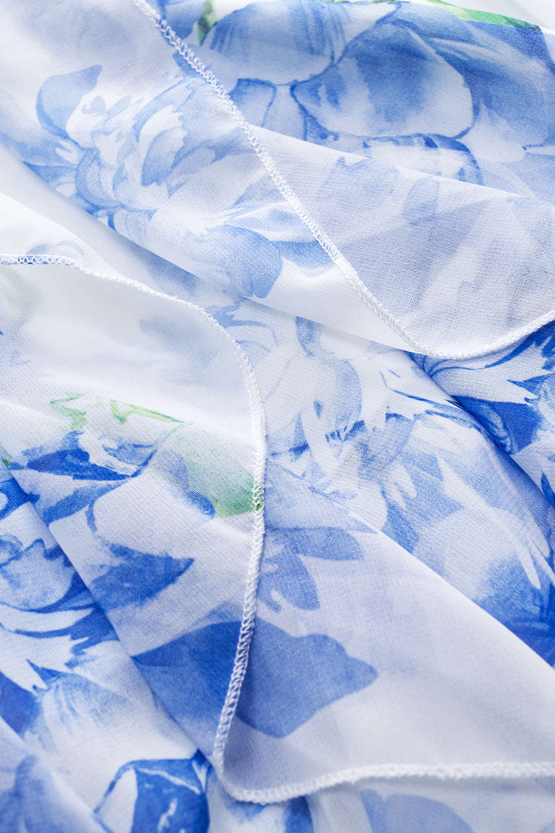 Floral Print Chiffon Ruffled Backless Sleeveless Midi Dress