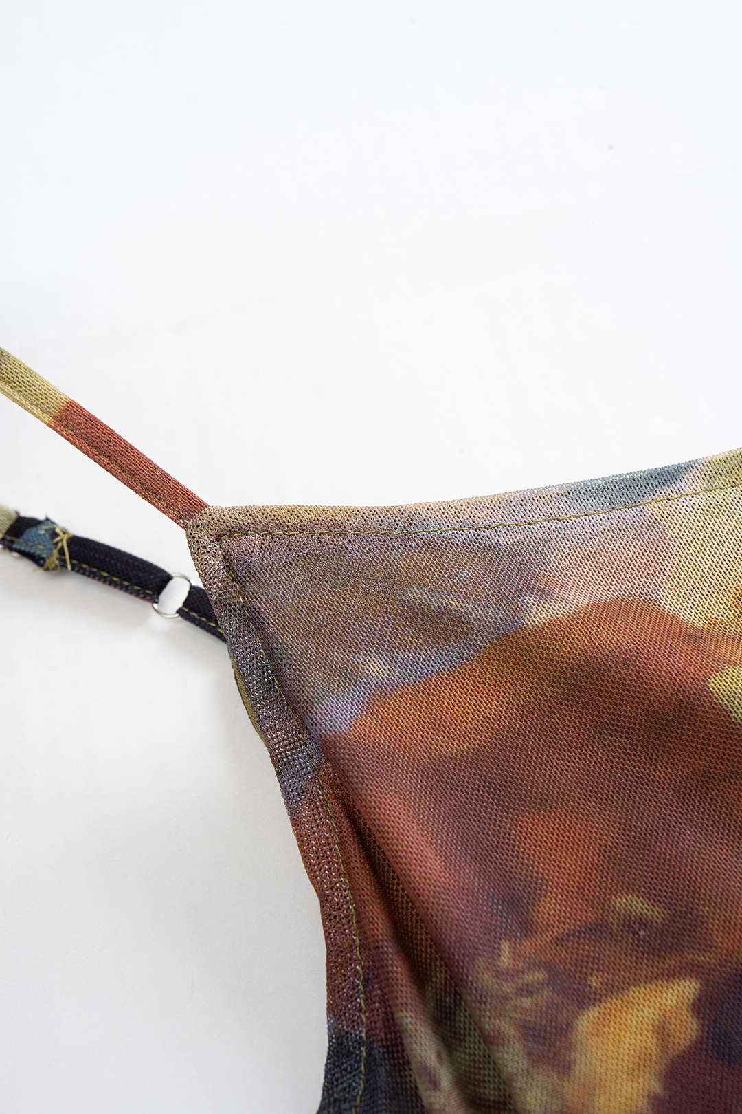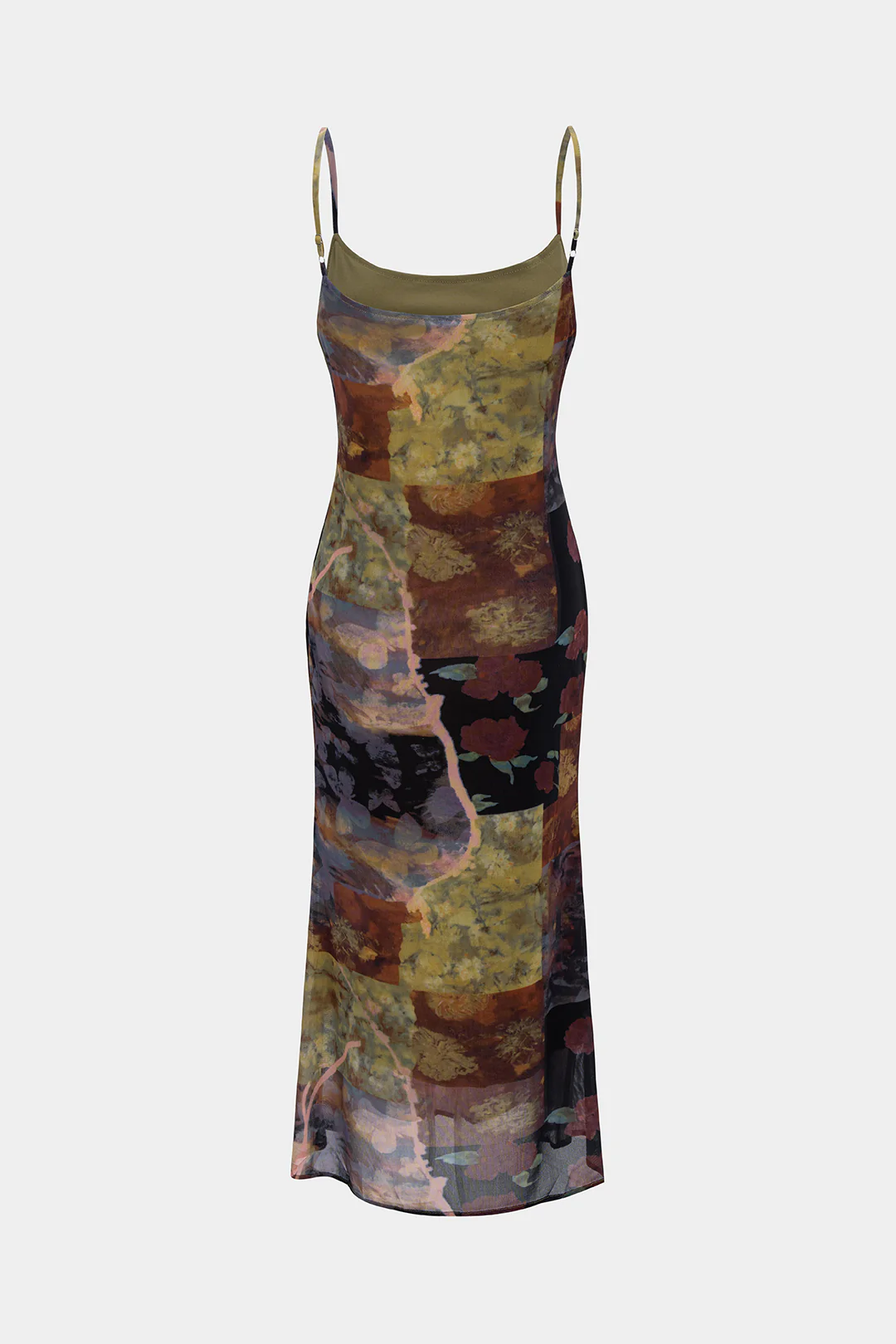 Vintage Floral Print Mesh Sleeveless Midi Slip Dress