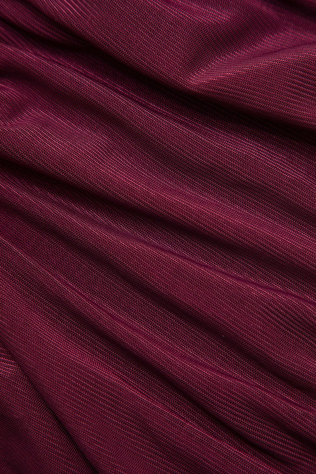 Mesh Cut-Out Ruched Long-Sleeve Mini Dress