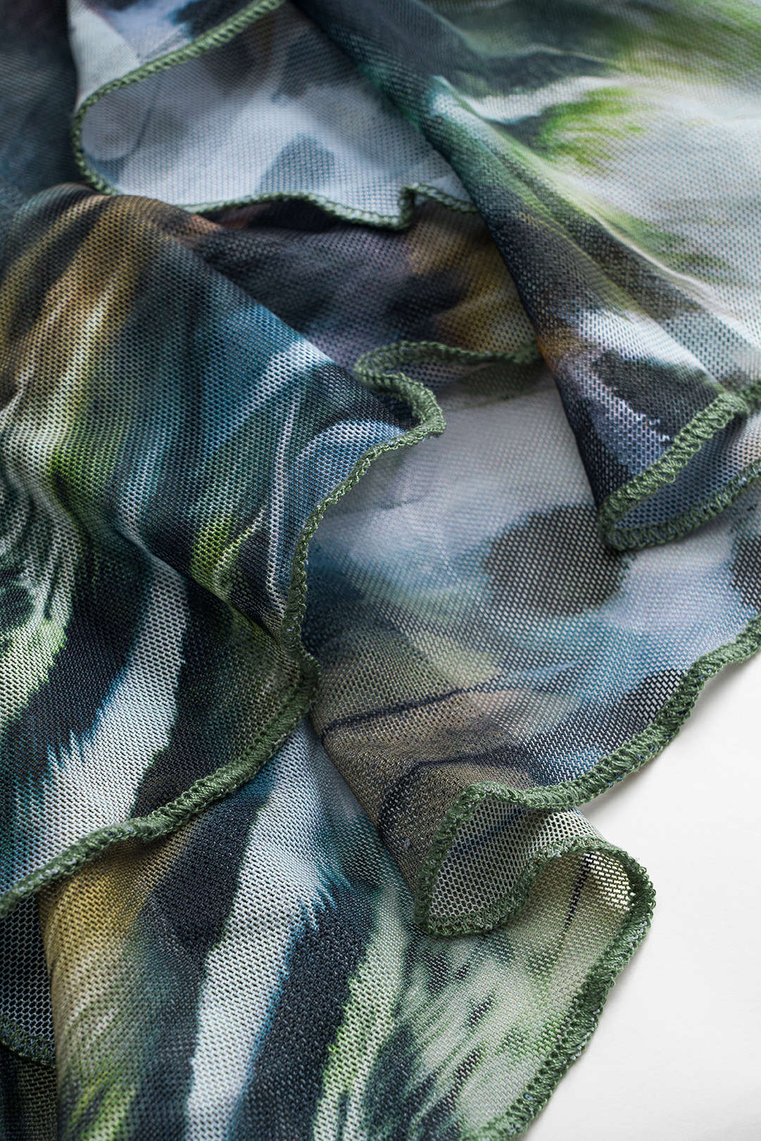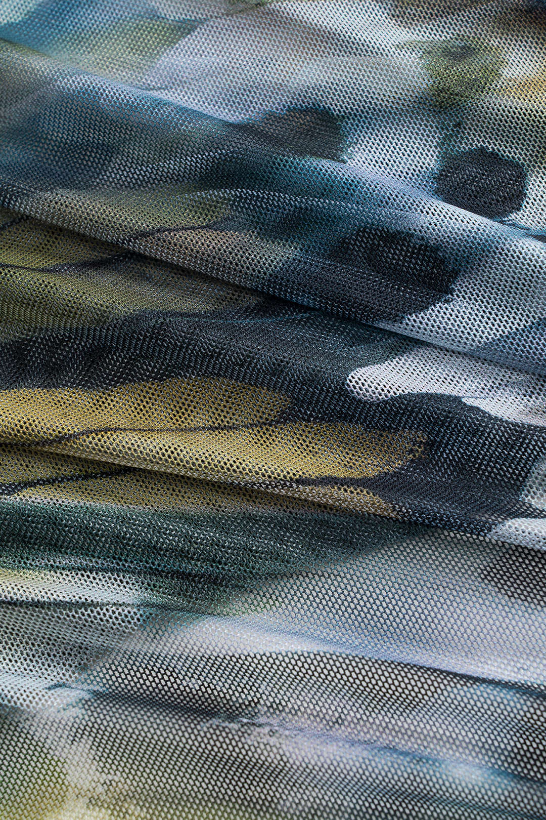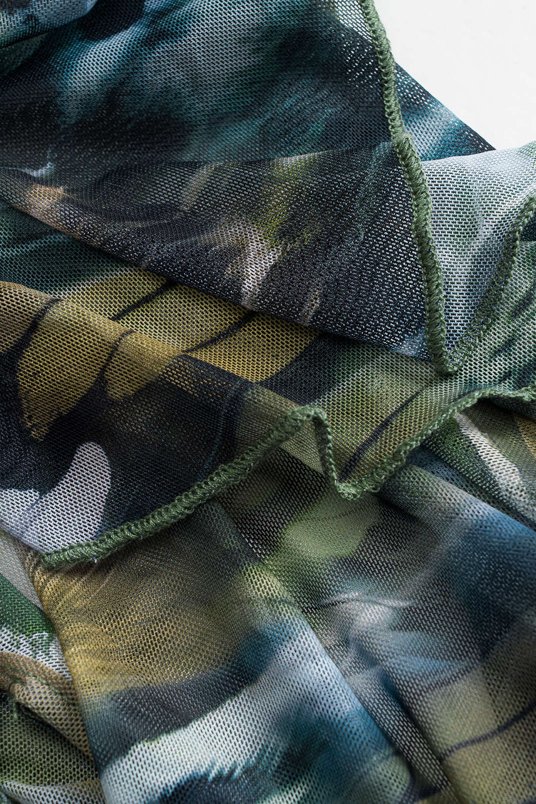 Abstract Pattern Mesh Halter Neck Backless Tie-Up Sleeveless Mini Dress
