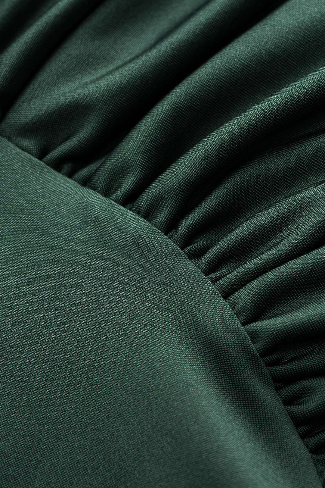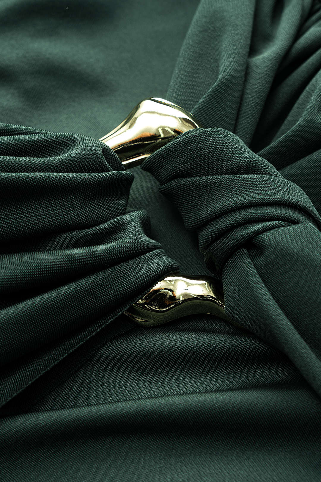 Metallic Ruched Strappy Knotted Long-Sleeved Mini Dress