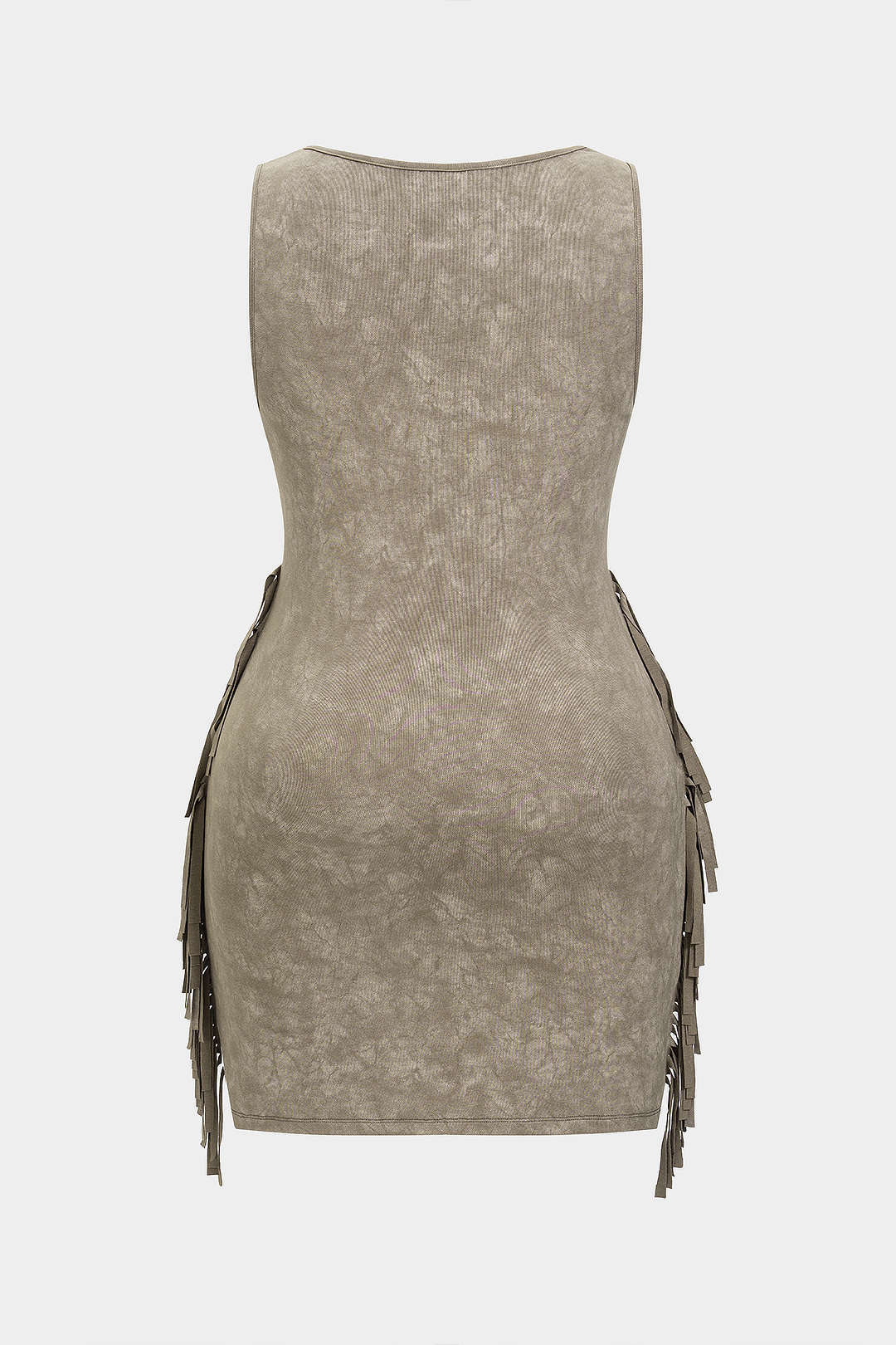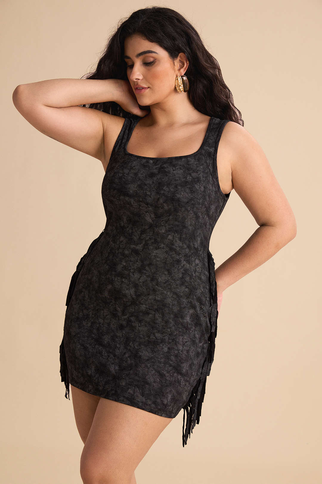 Plus Size Tie-Dye Printed Fringe Square-Neck Sleeveless Mini Dress
