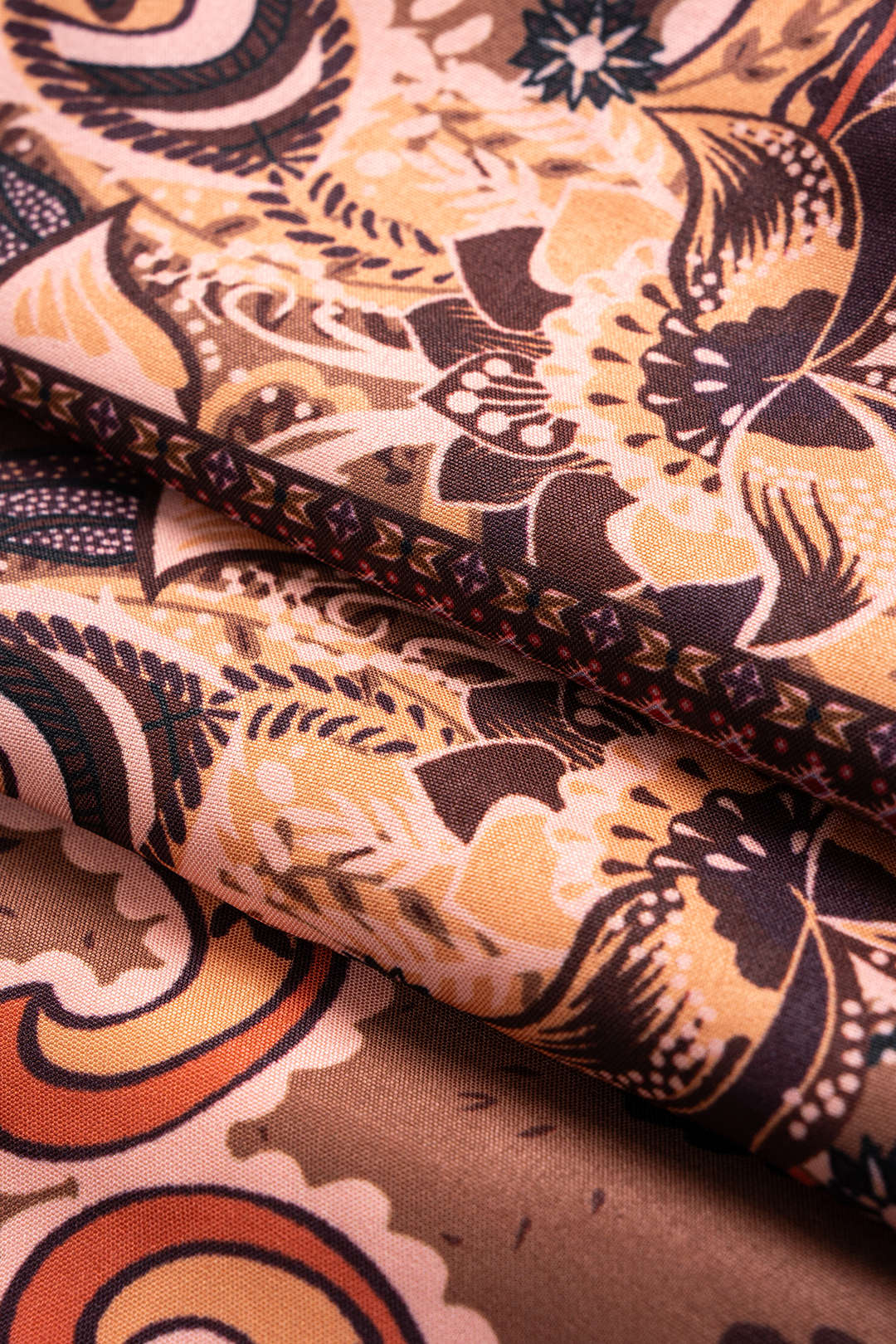 Bohemian Print Satin Fringe Trim Strapless Sleeveless Mid-length Dress