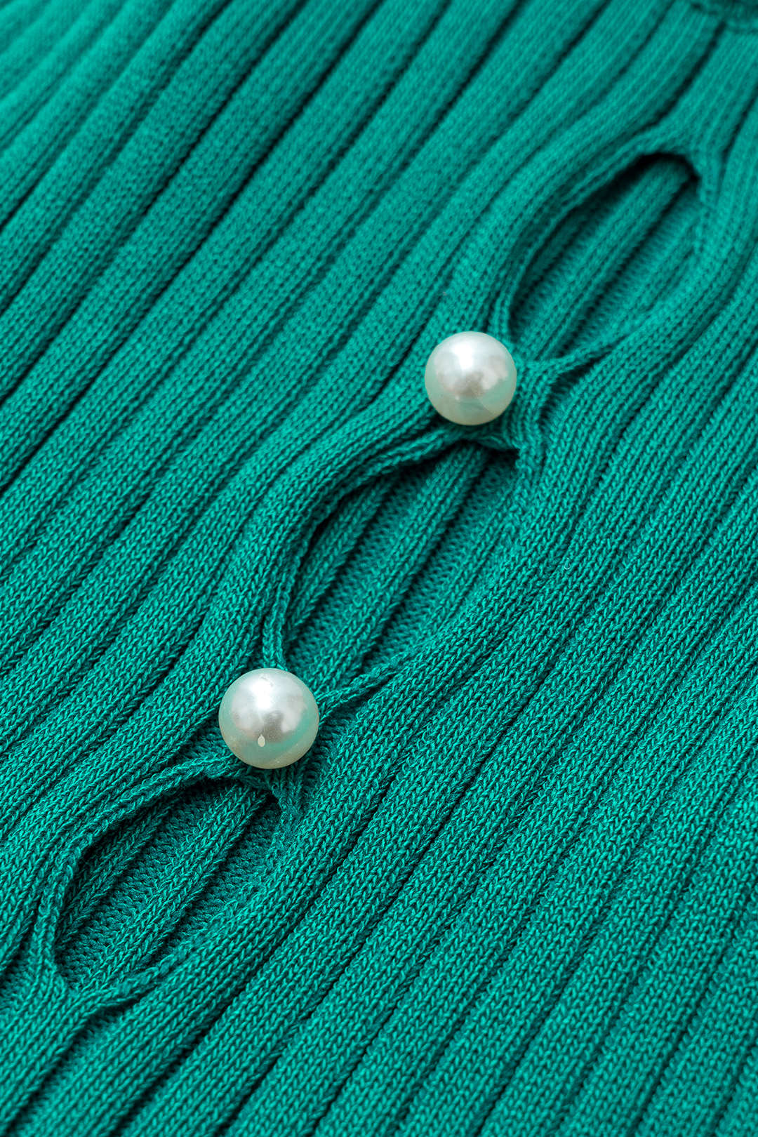 Knit Hollow-Out Pleated Ruffle Sleeveless Dress