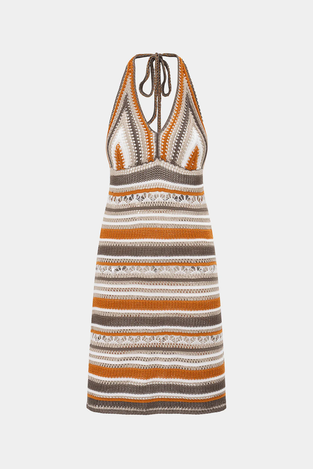 Knit Contrast Halter Neck Backless Sleeveless Hollow-Out Dress