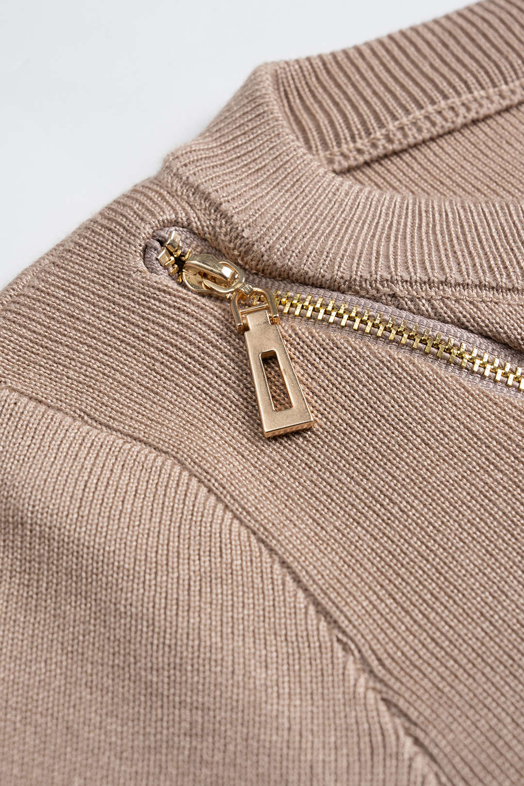 Knit Asymmetric Zipper Long-Sleeve Dress