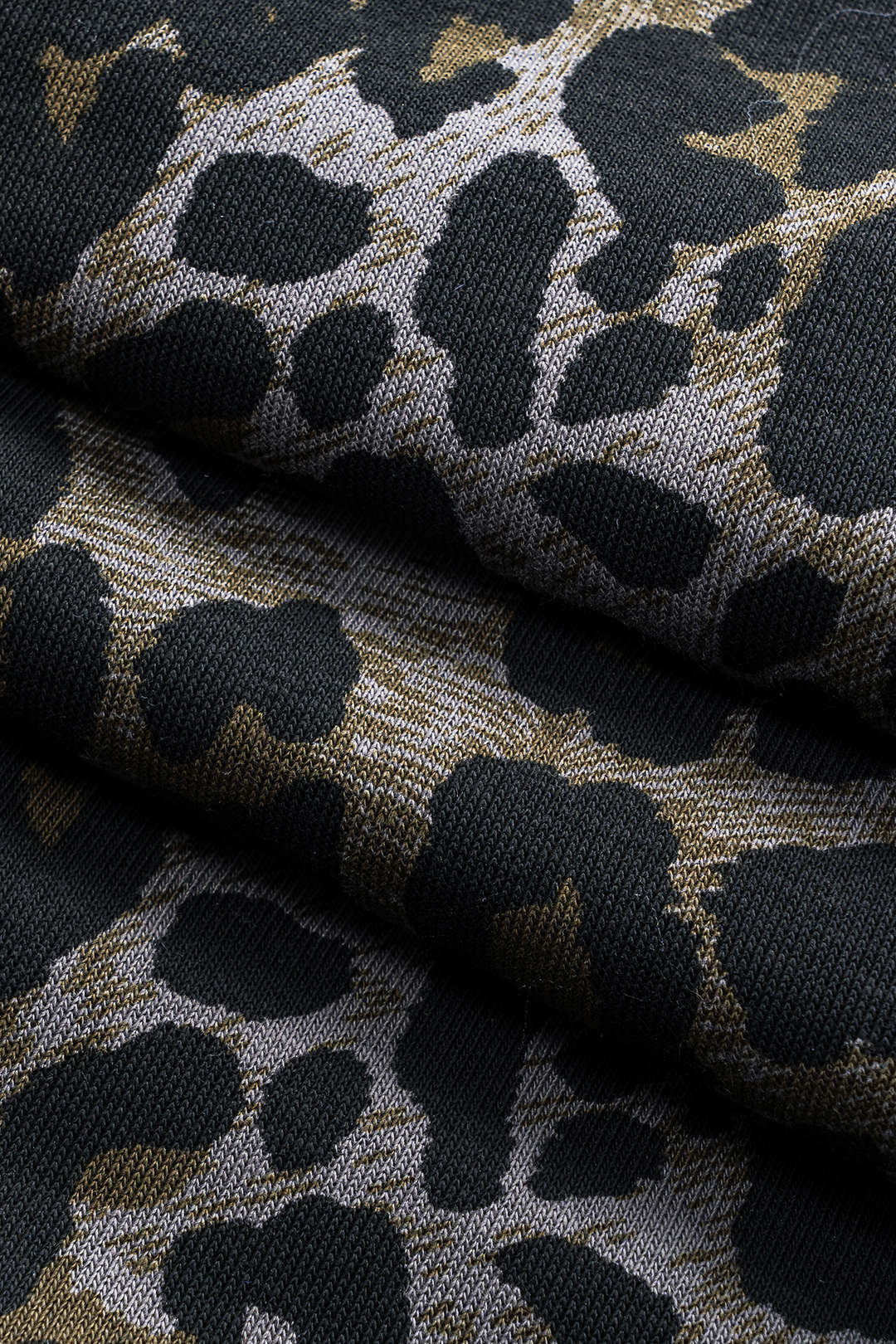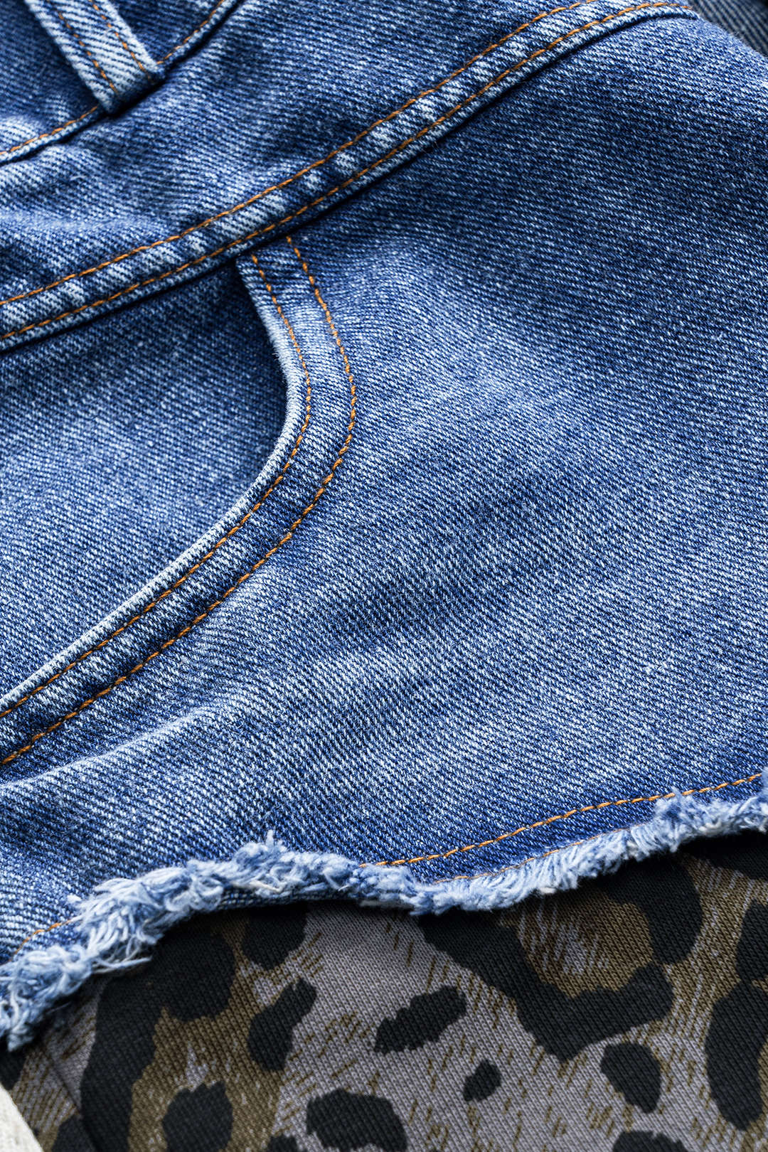 Leopard Print Denim Patchwork Button Pocket Wide-Leg Jeans