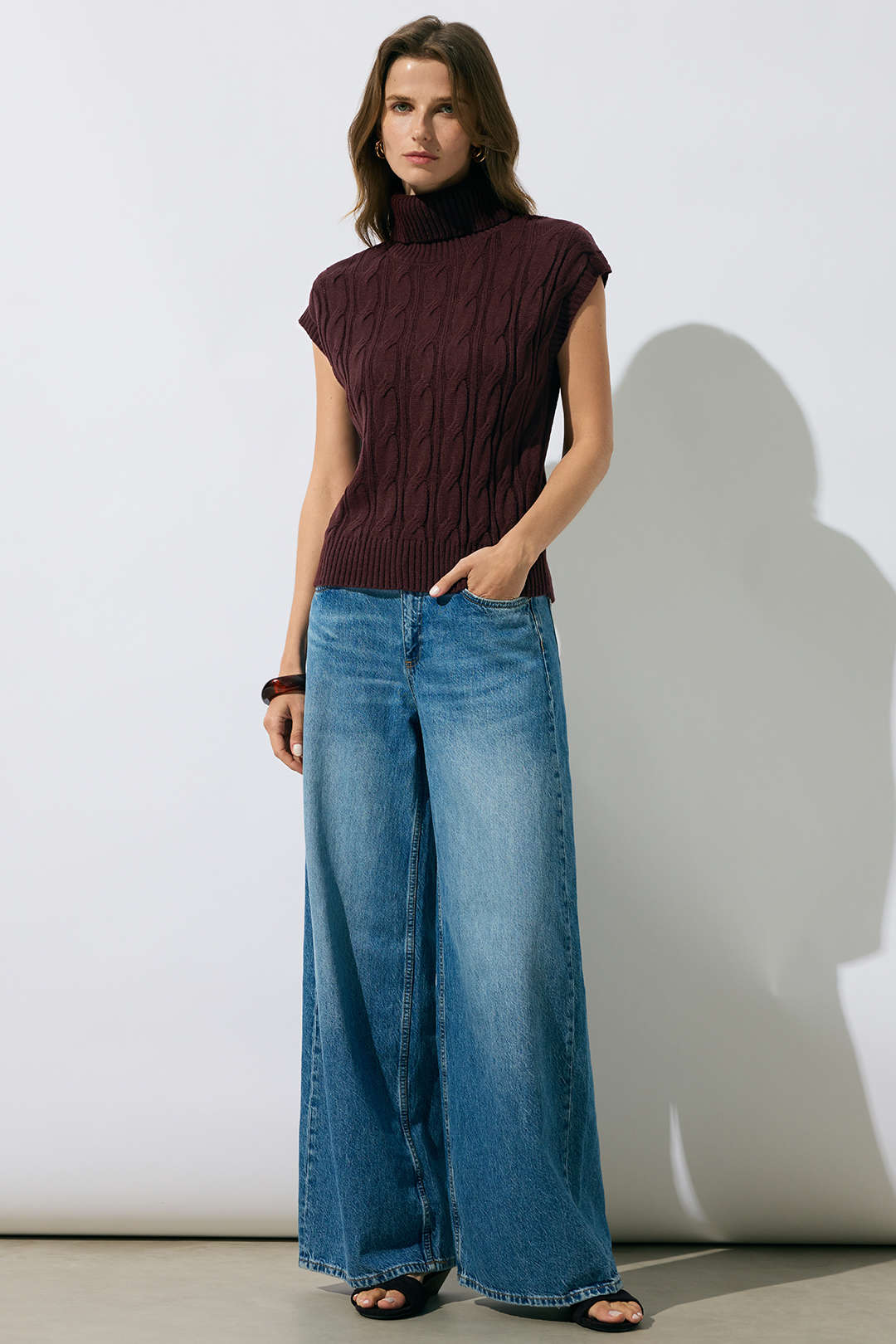 Home / KNIT BOTTOMS / Ribbed Knit High Collar Tank Top