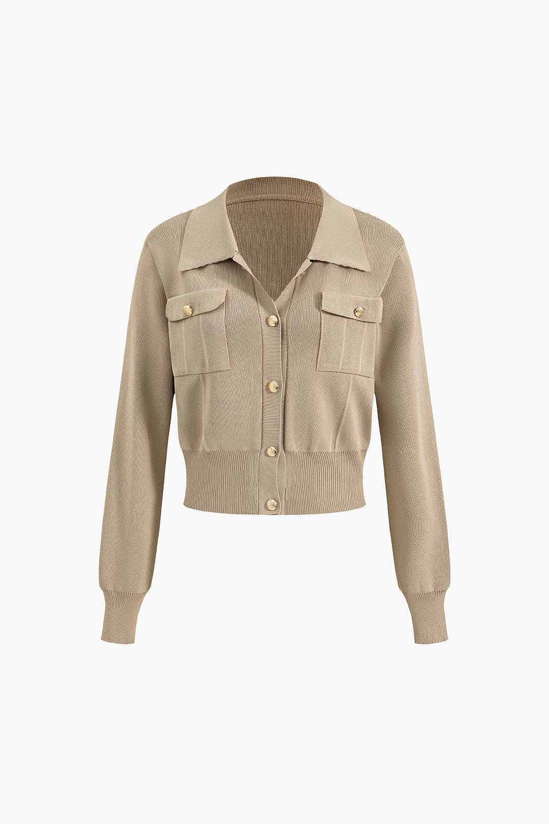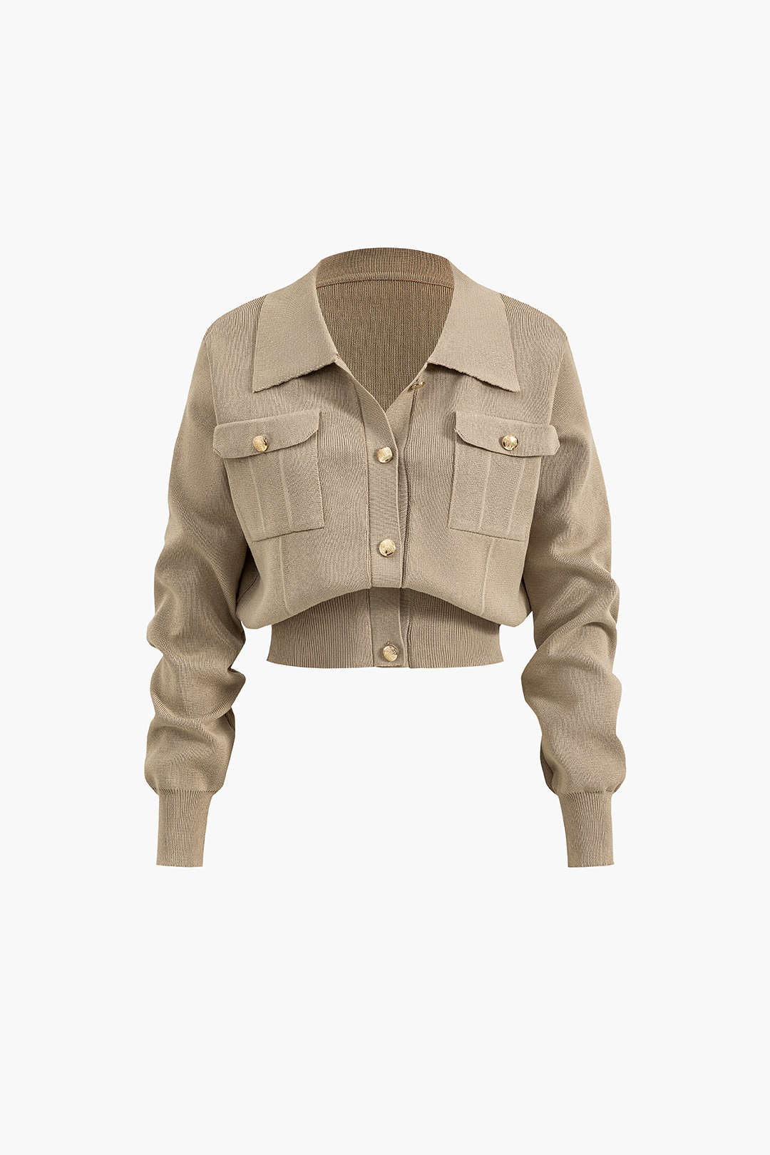 Cropped Button-Up Knit Top and Maxi Skirt Ensemble