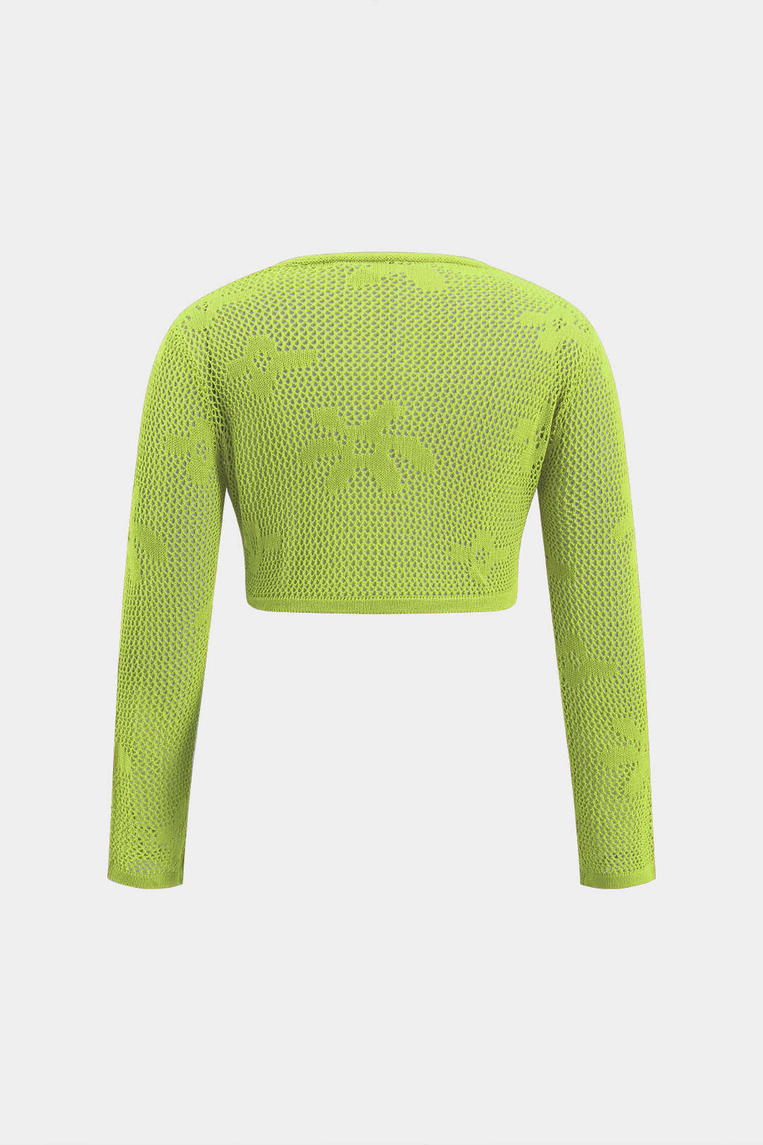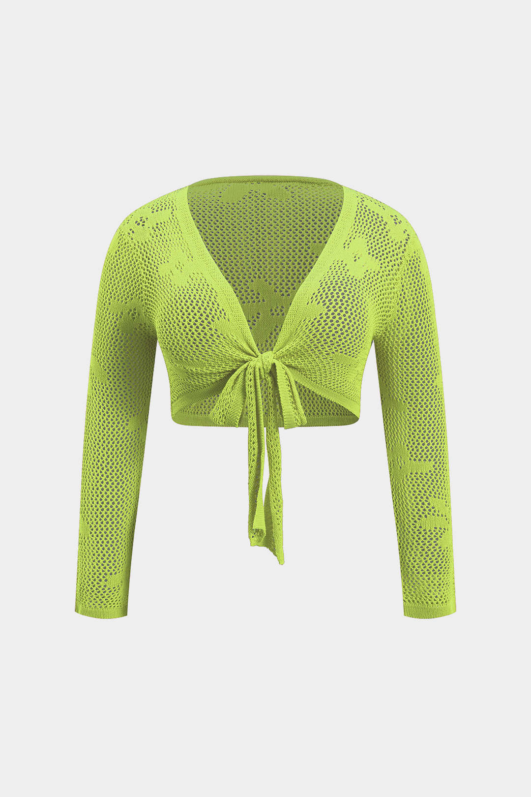 Plus Size Long Sleeve Knit Top with Floral Pattern, Ruched Cut Out, and Tie Front