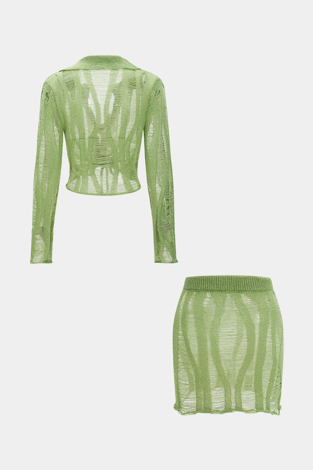 Knit Cut-Out Tie-Up Long-Sleeve Shirt and Skirt Set