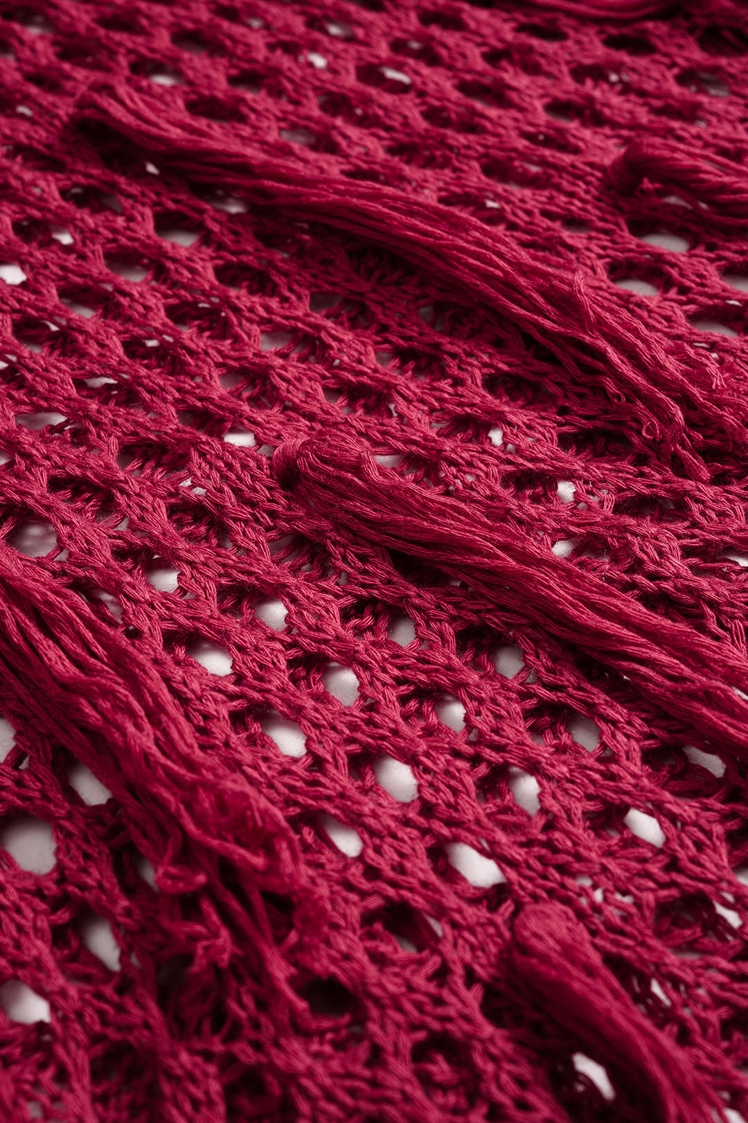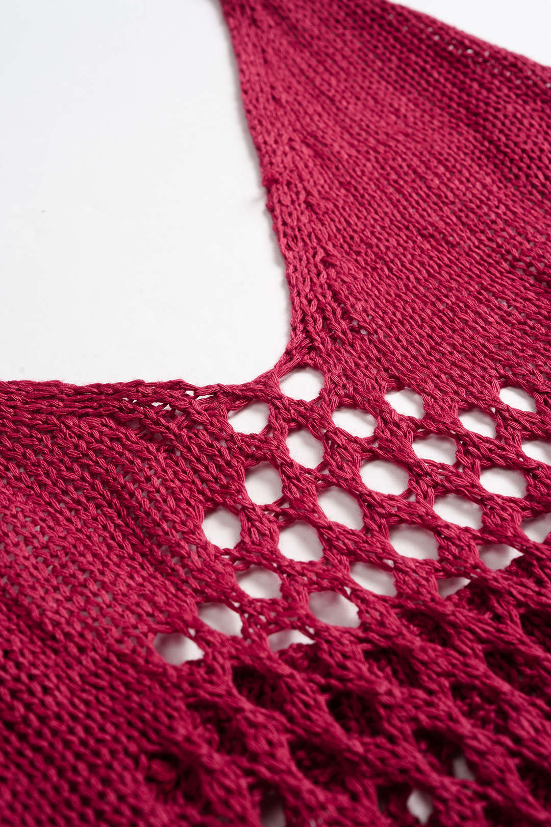 Knit Halter Neck Tie-Back Hollow-Out Fringe Sleeveless Dress