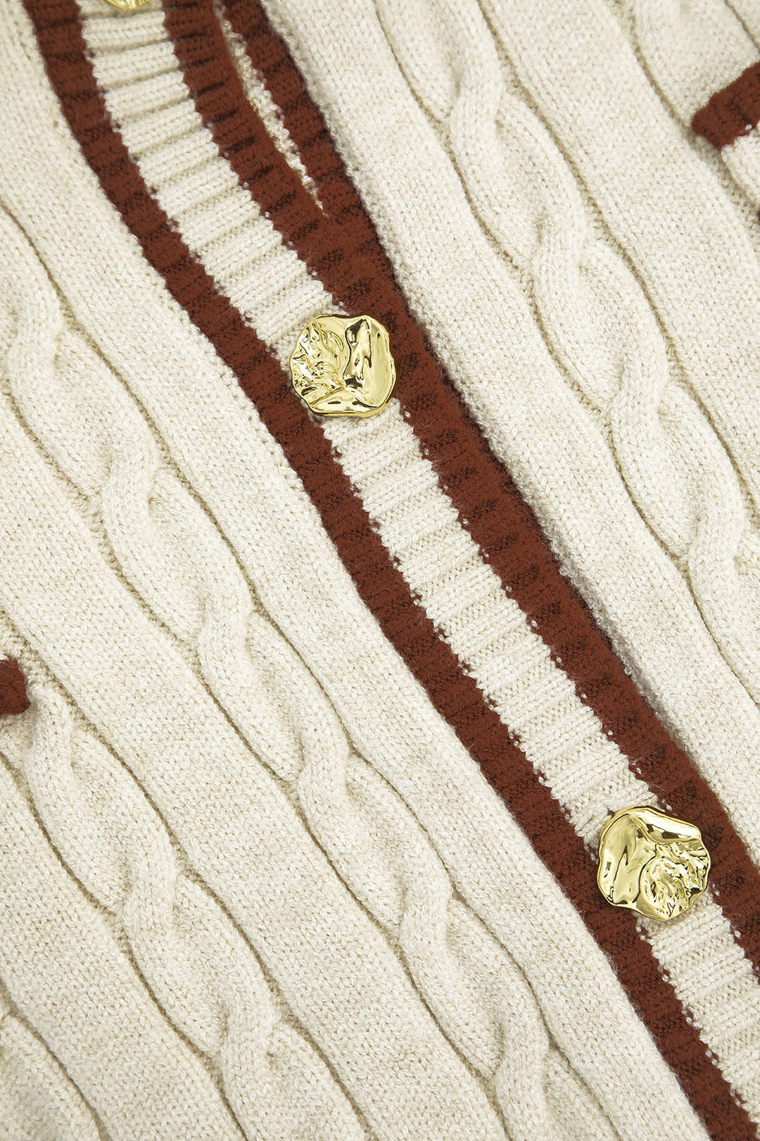 Color Block Knit Button with Fake Pockets Long Sleeve Top
