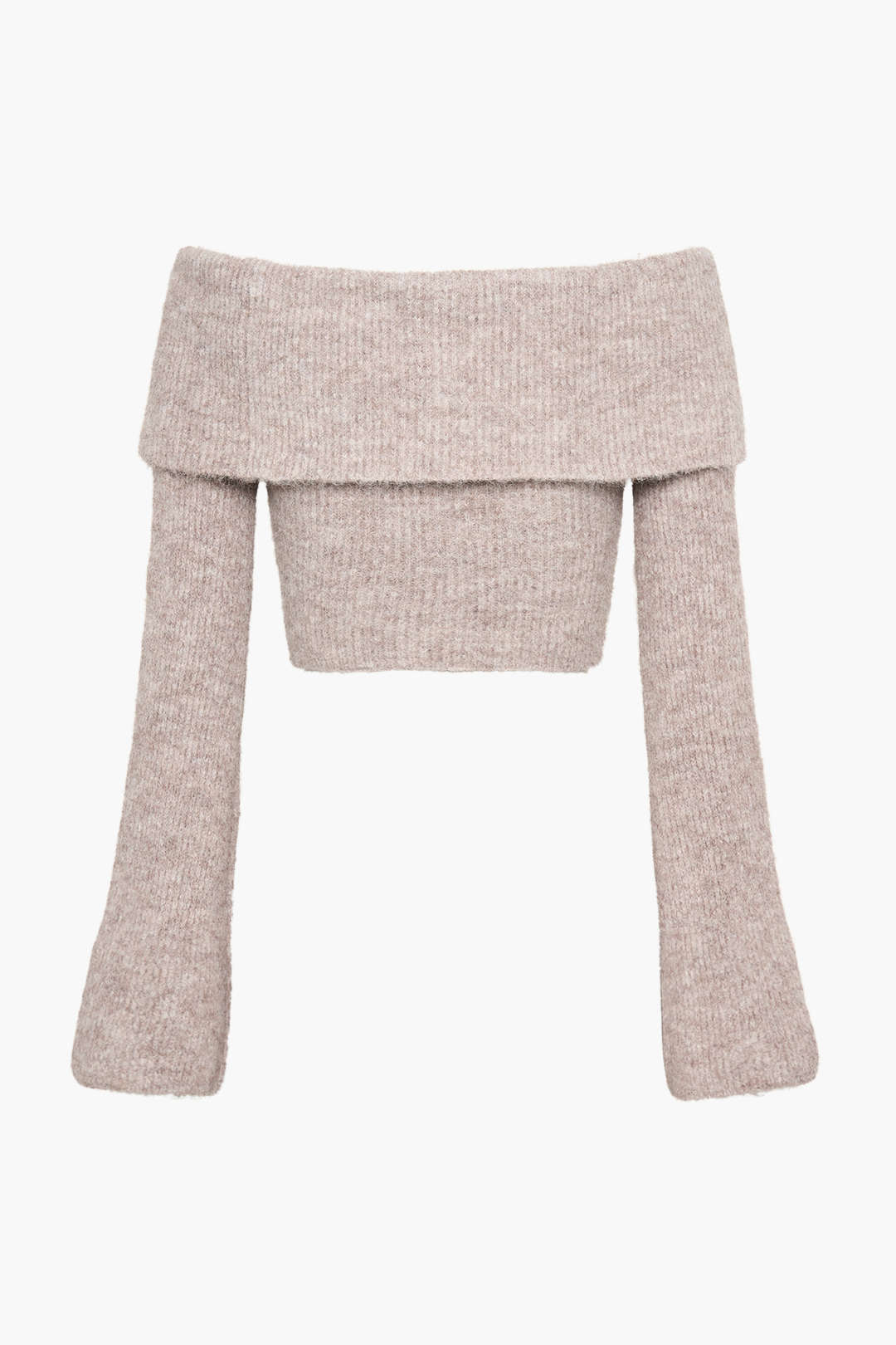 Solid Metallic Knit Off-Shoulder Long-Sleeve Top