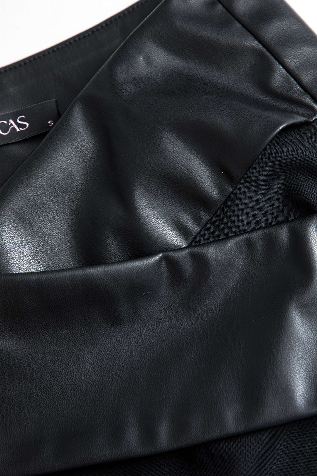 Solid Faux Leather Patchwork High-Waisted Crossed Pocket Pants
