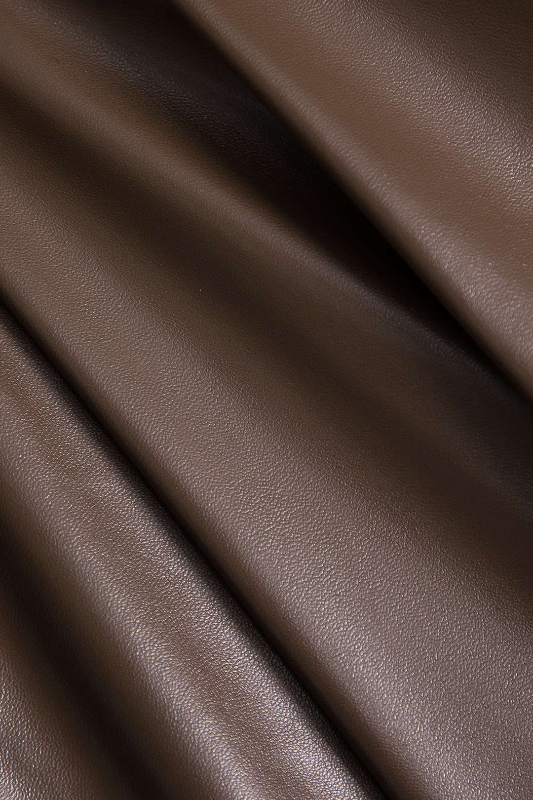Faux Leather Ruched Zipper V-Neck Mini Dress