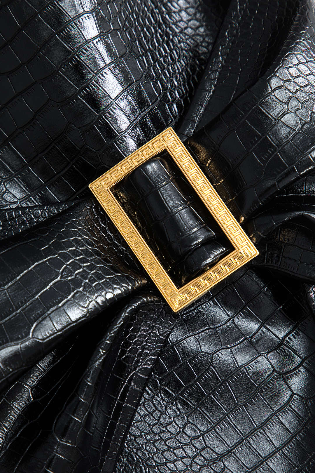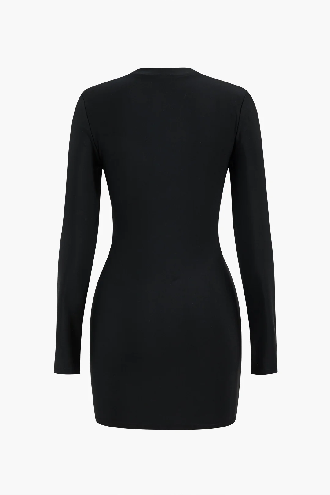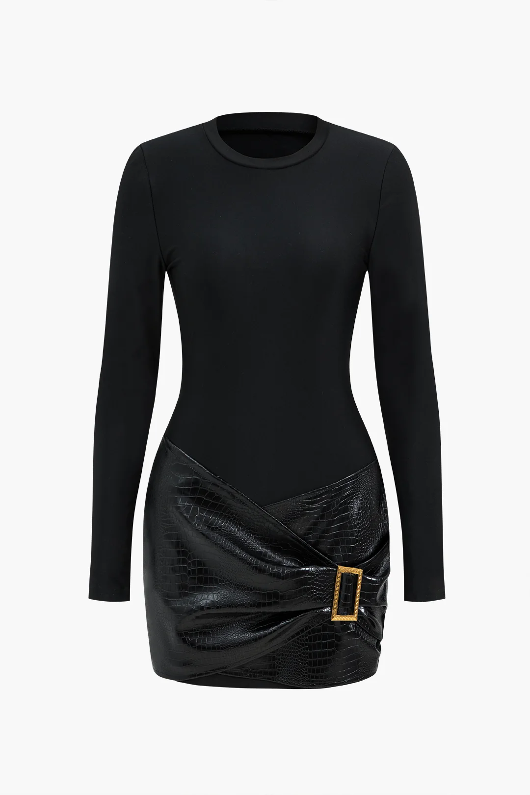 Faux Leather Patchwork Long-Sleeved Mini Dress