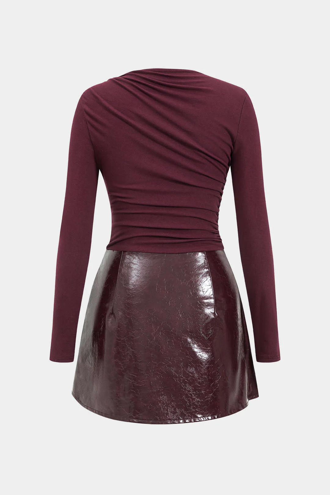 Faux Leather Patchwork Long Sleeve Mini Dress