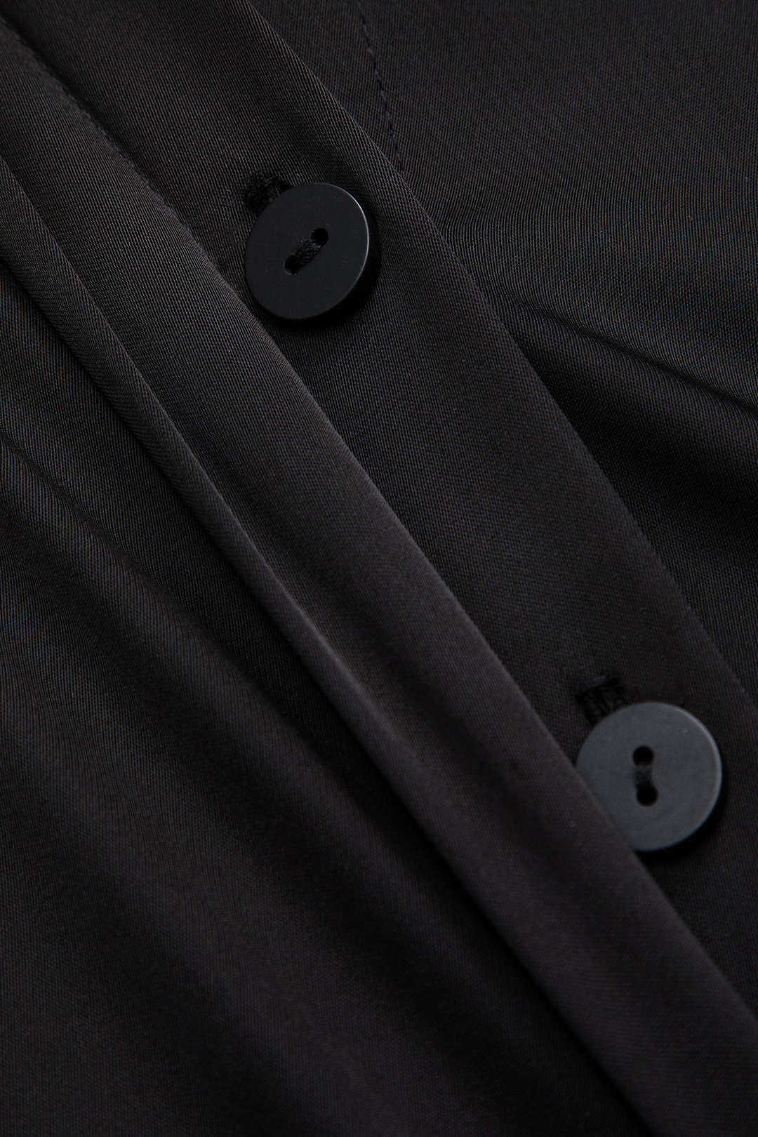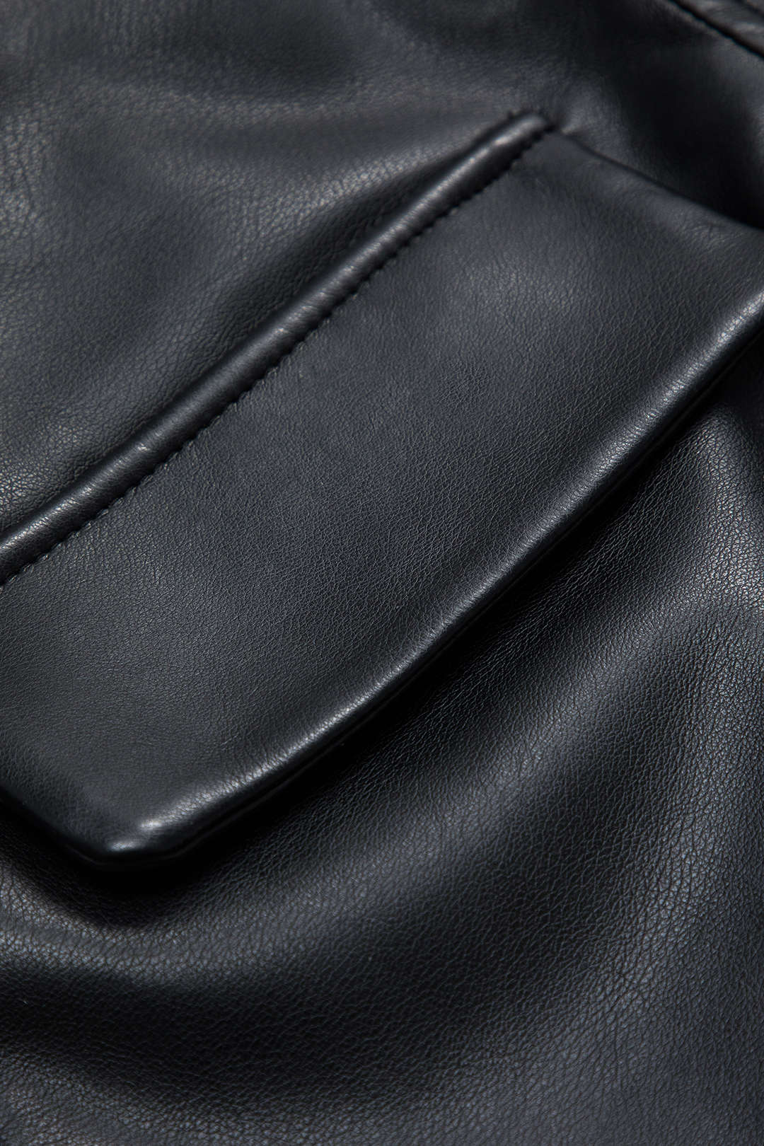Satin Faux Leather Long Sleeve Mini Dress with Pocket and Button Zipper