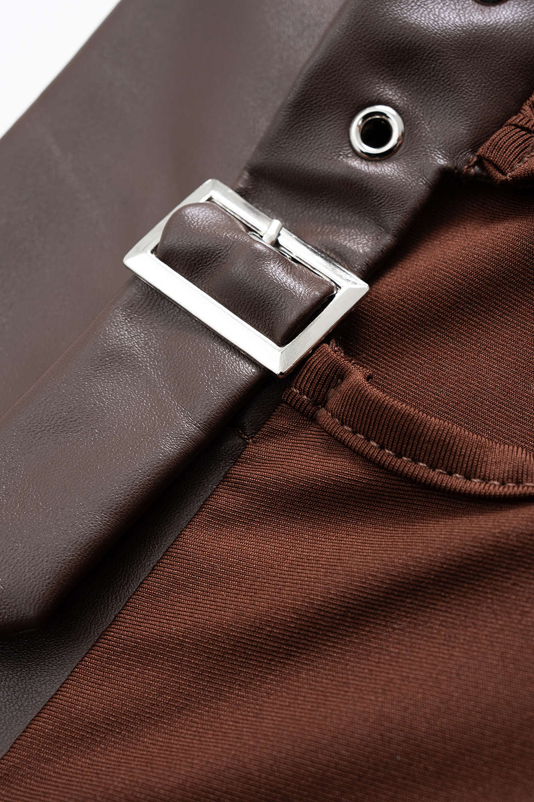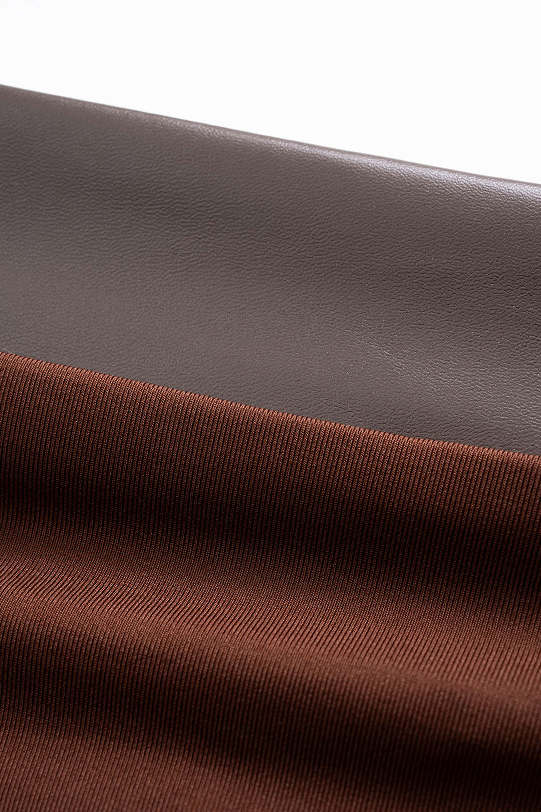 Off-the-Shoulder Faux Leather Patchwork Cut-Out Long-Sleeve Top