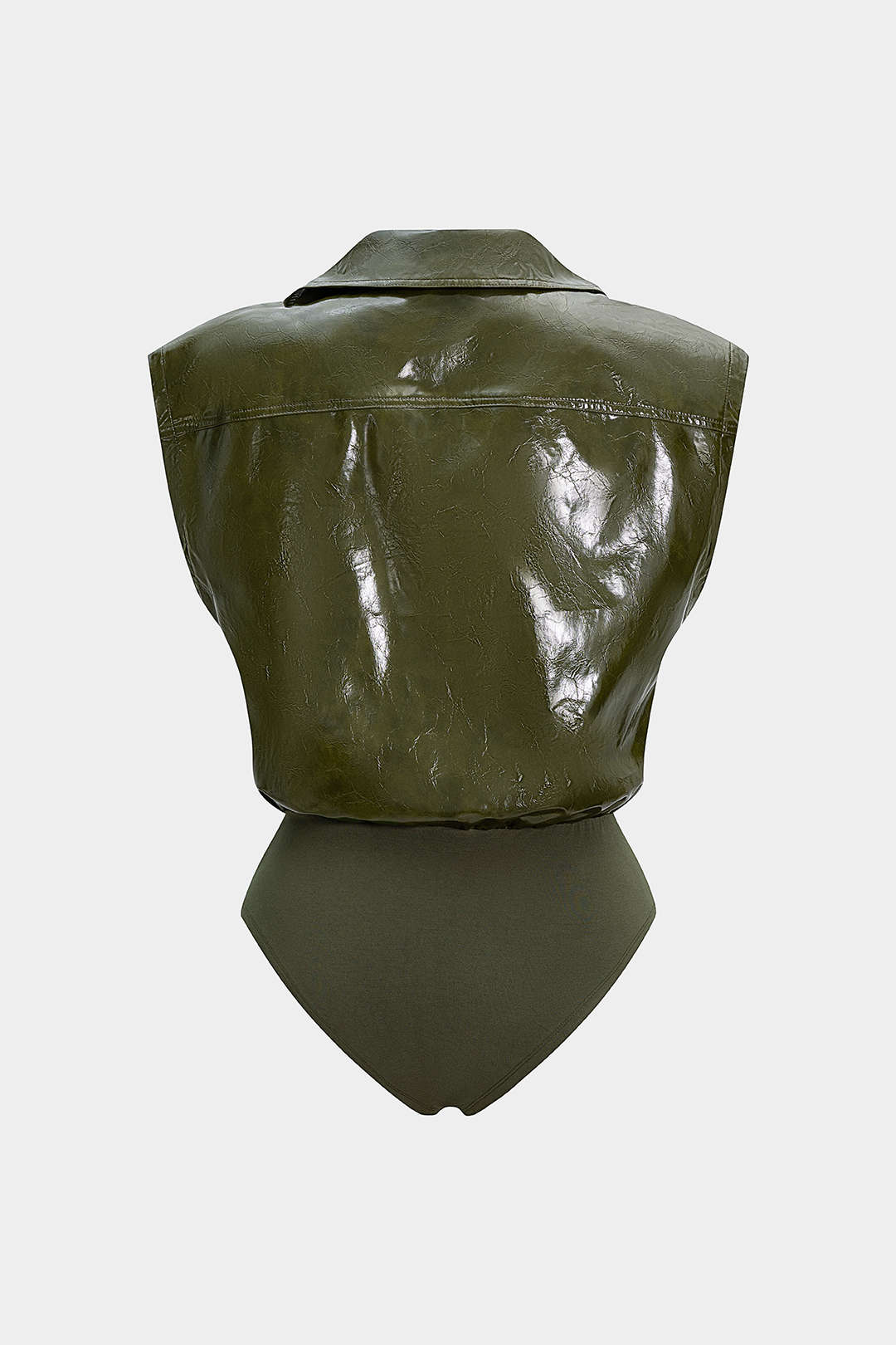 Faux Leather Button Patchwork Sleeveless Bodysuit