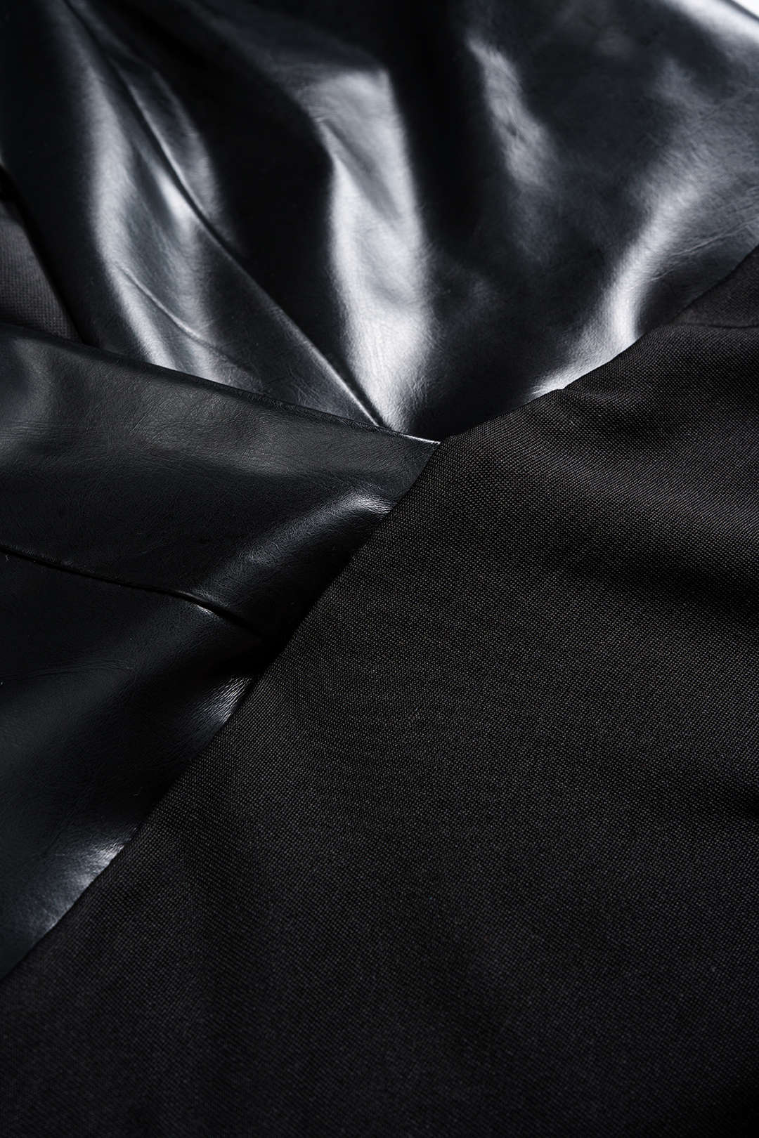 Faux Leather Chain Patchwork Sleeveless V-Neck Bodysuit