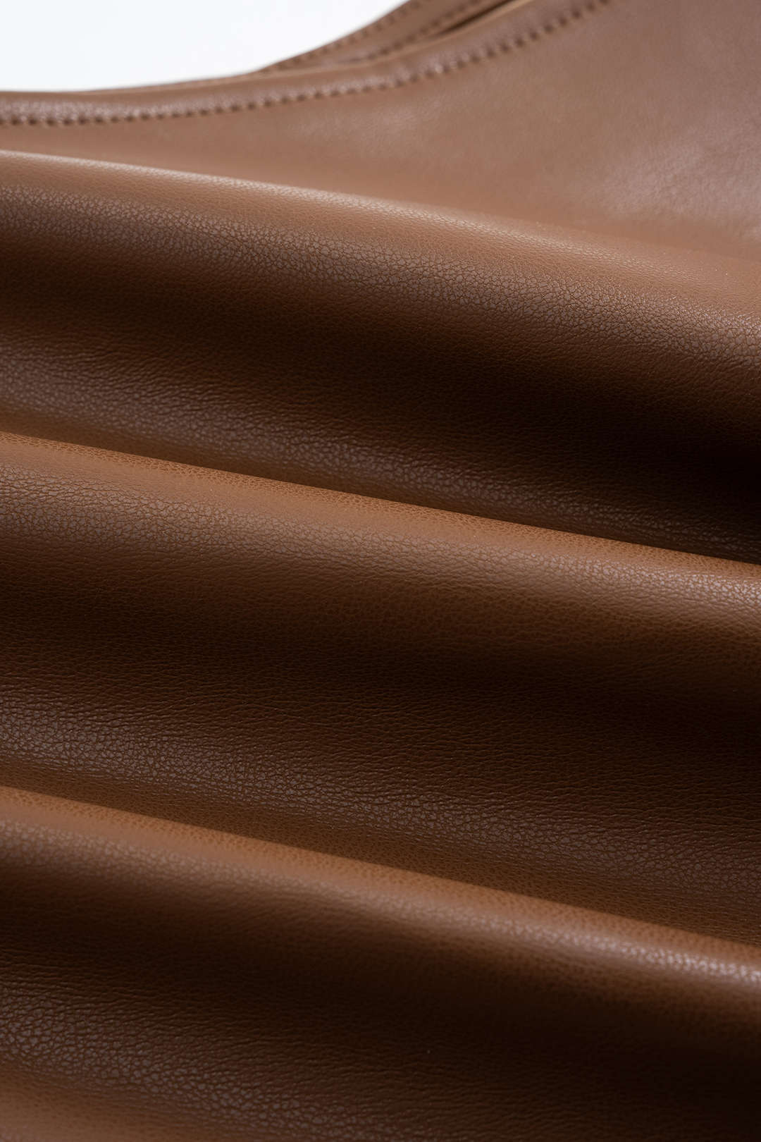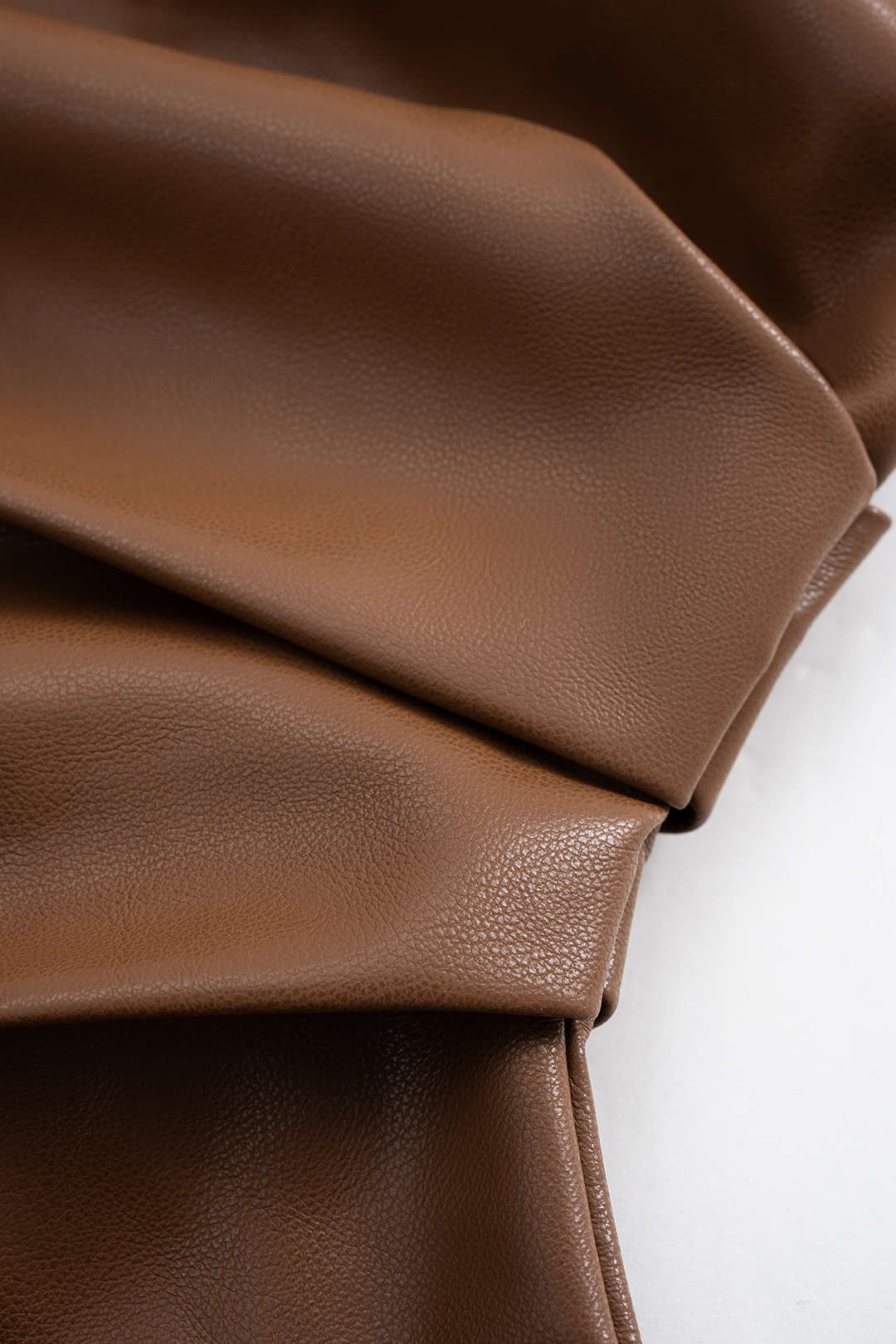 Faux Leather Asymmetric Shoulder Ruched T-Shirt