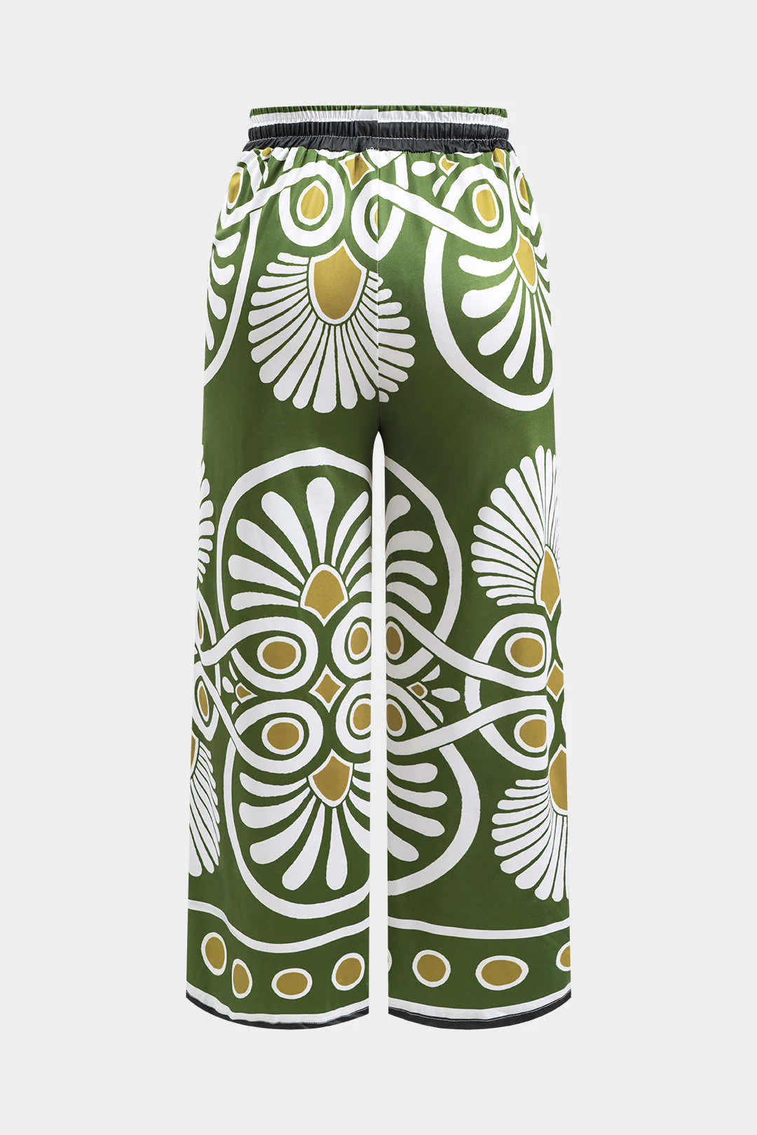 Abstract Pattern Drawstring Wide-Leg Trousers