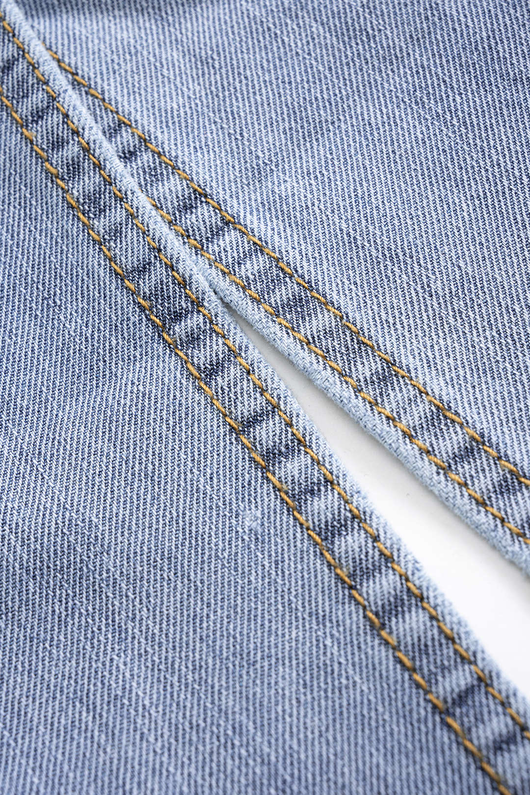 • Denim Buttoned Shirred Short-Sleeve Dress