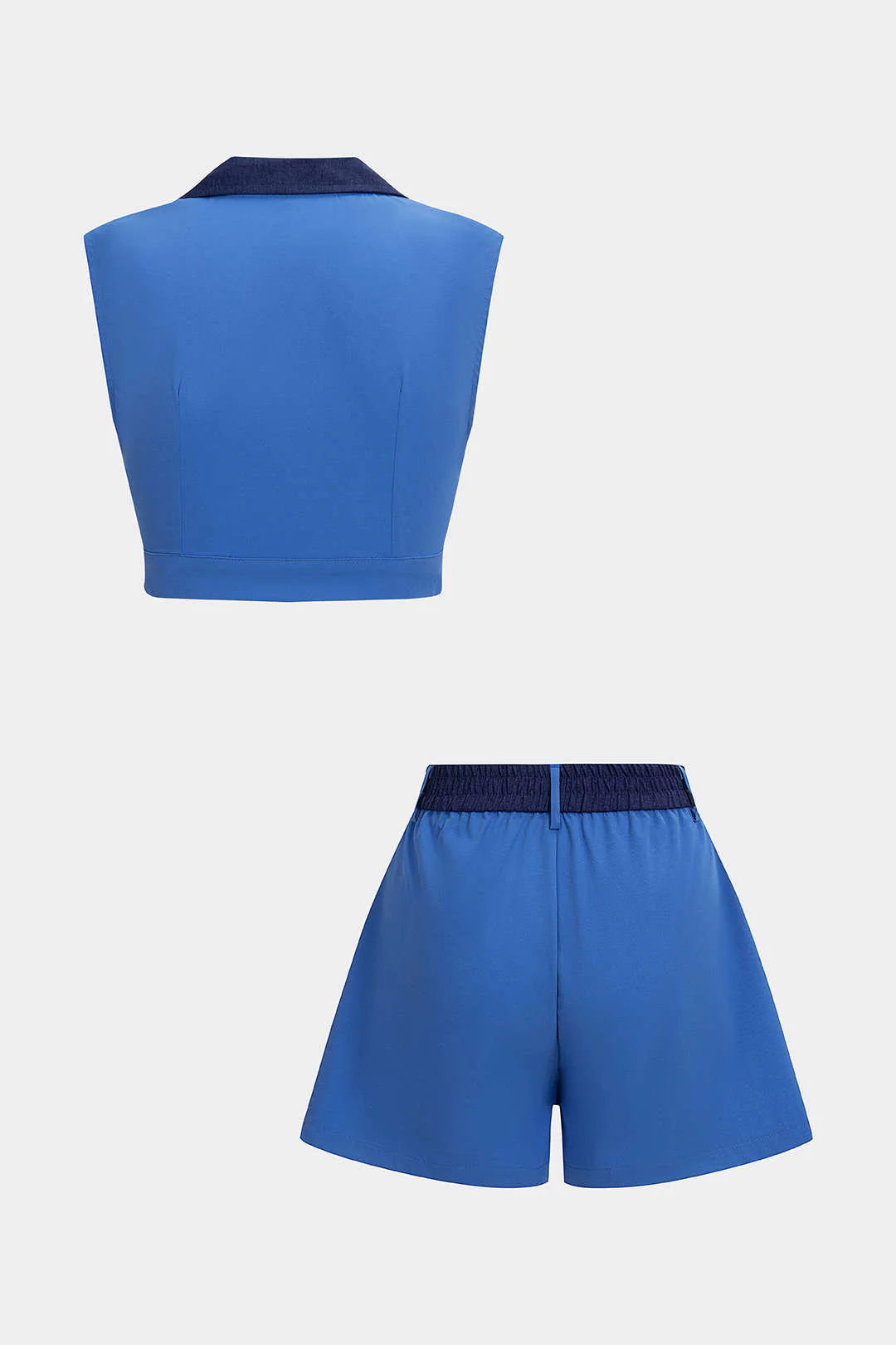 Patchwork Metallic Decor V Neck Tank Top and Shorts Outfit Set