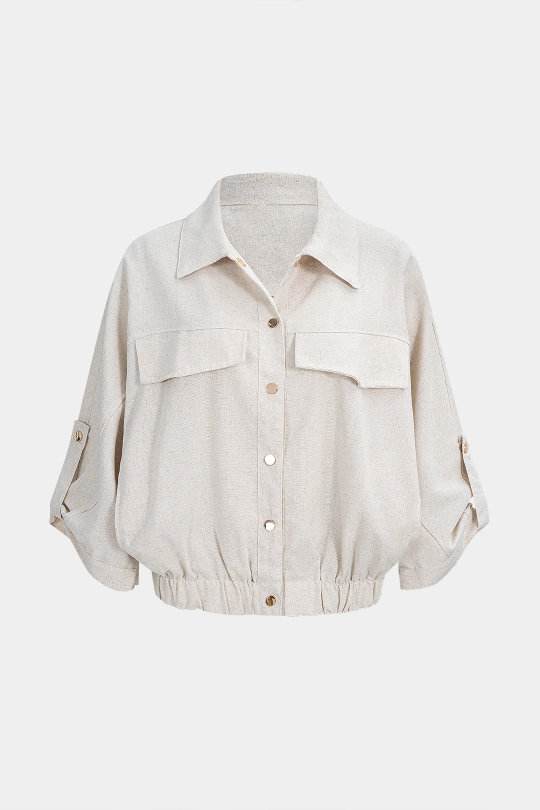 Linen Metallic Button Shirred Short Sleeve Top