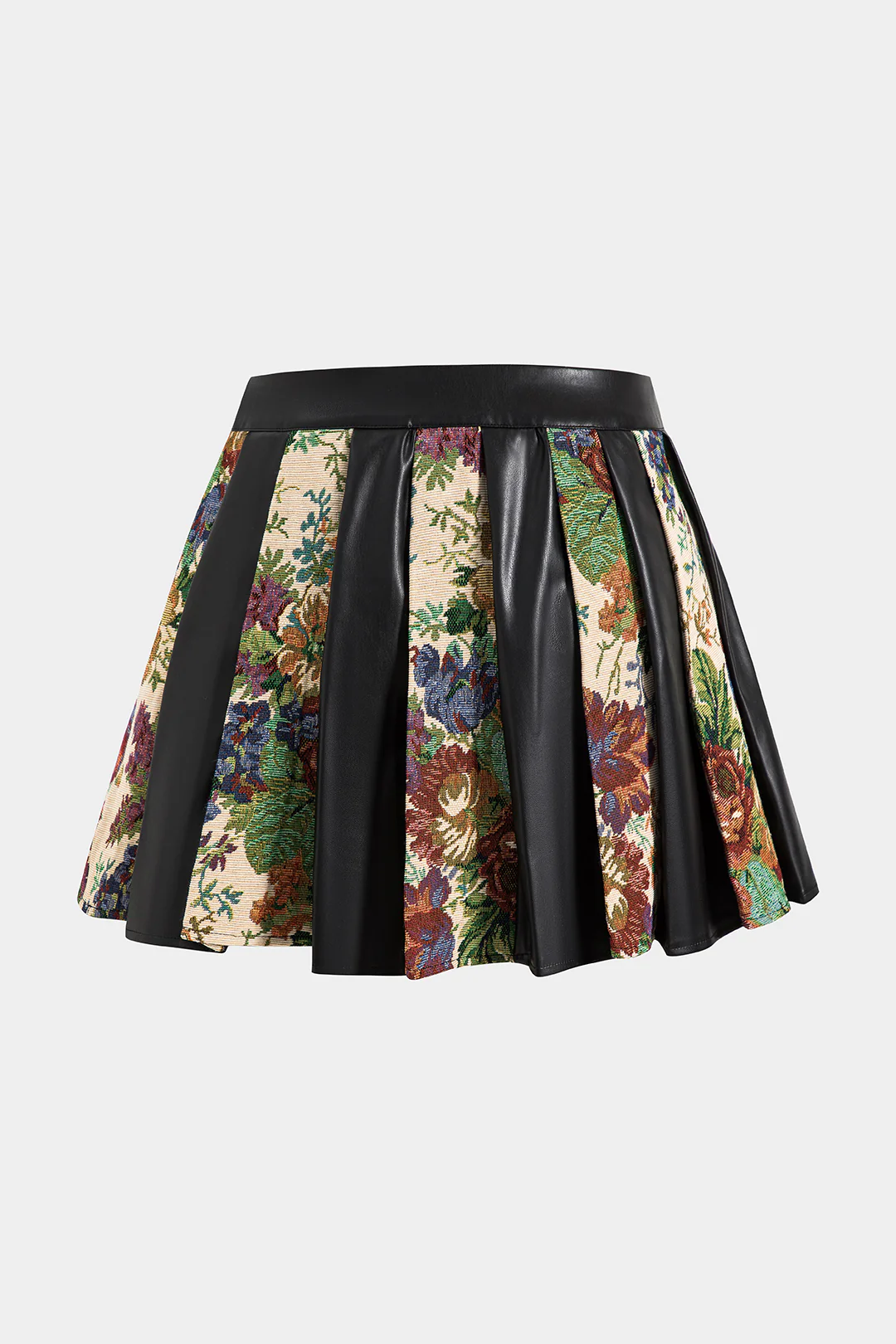 Jacquard Faux Leather Patchwork Skirt