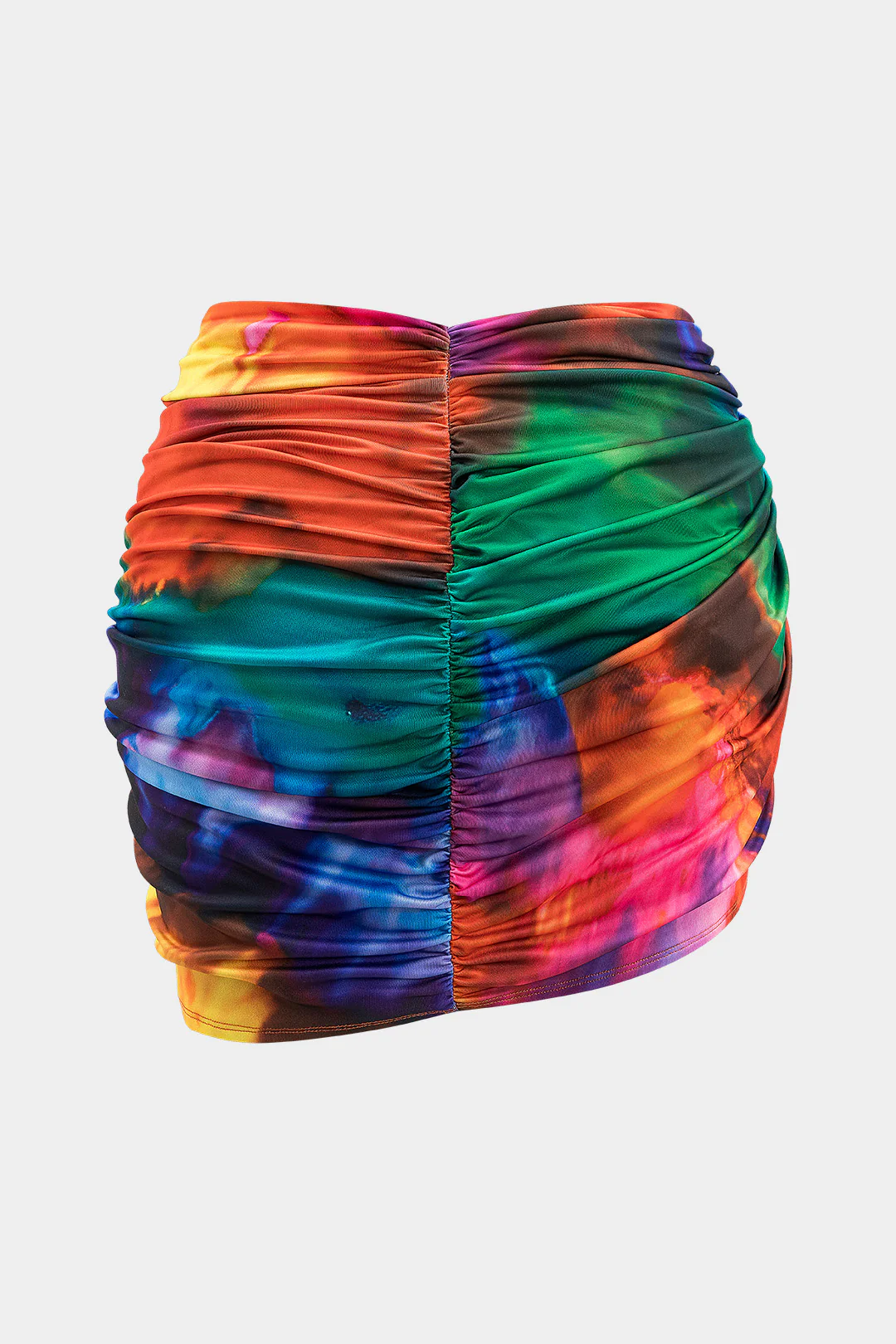 Plus Size Tie-Dye Printed Ruched Knot Skirt