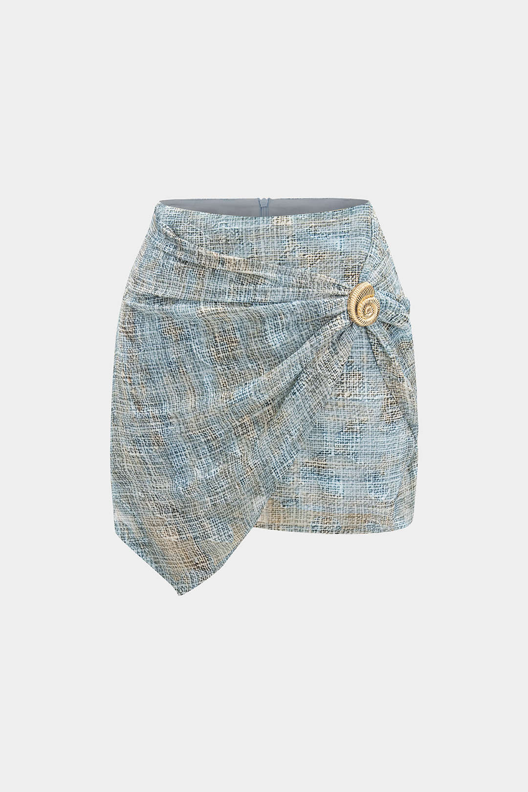 Abstract Pattern Chiffon Zipper Metallic Shell Decor Ruched Skirt
