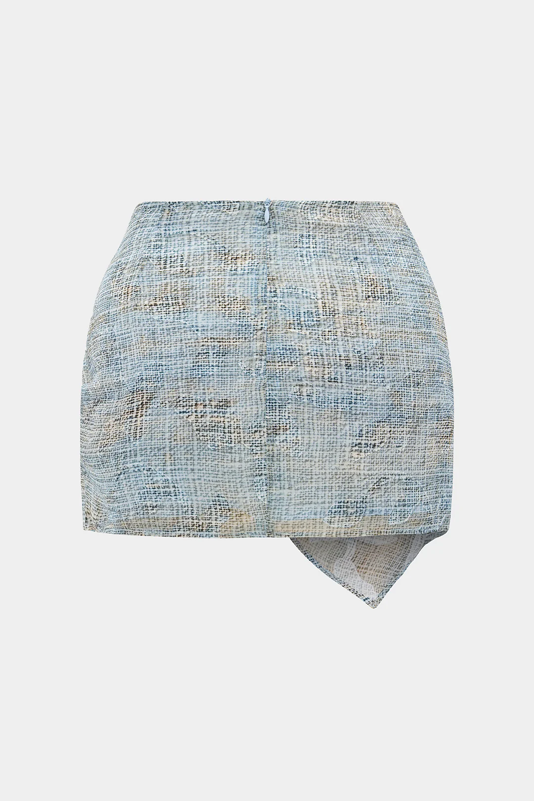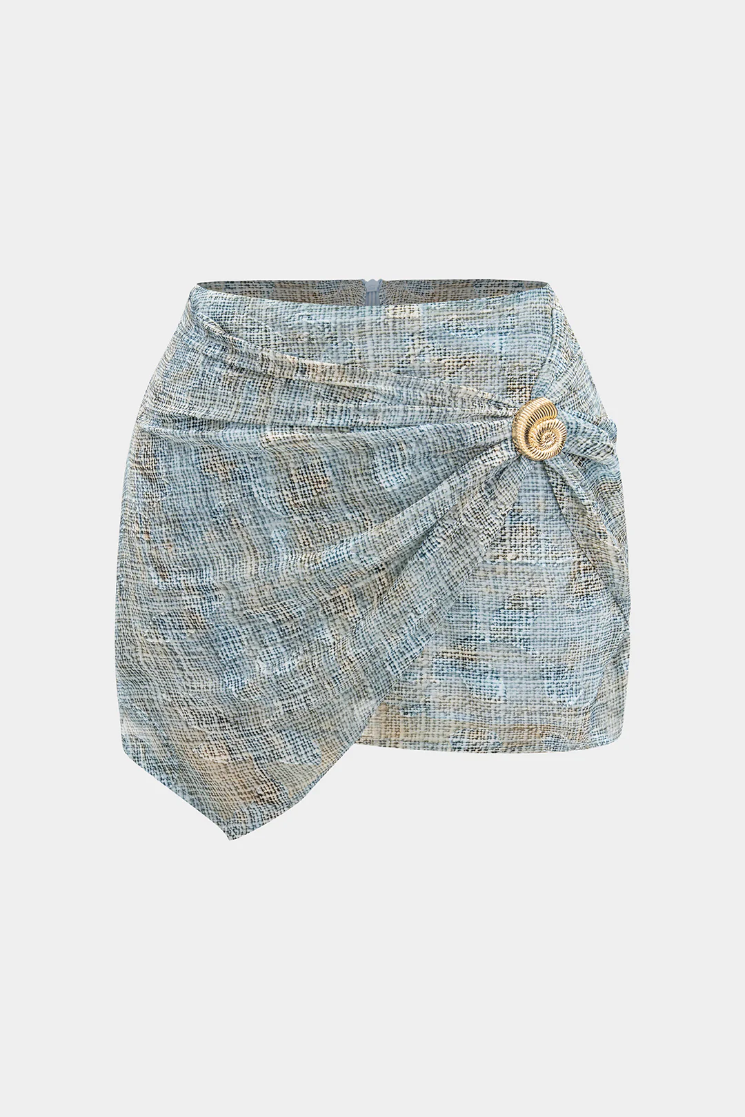 Plus Size Abstract Print Metallic Decor Ruched Zipper Chiffon Skirt