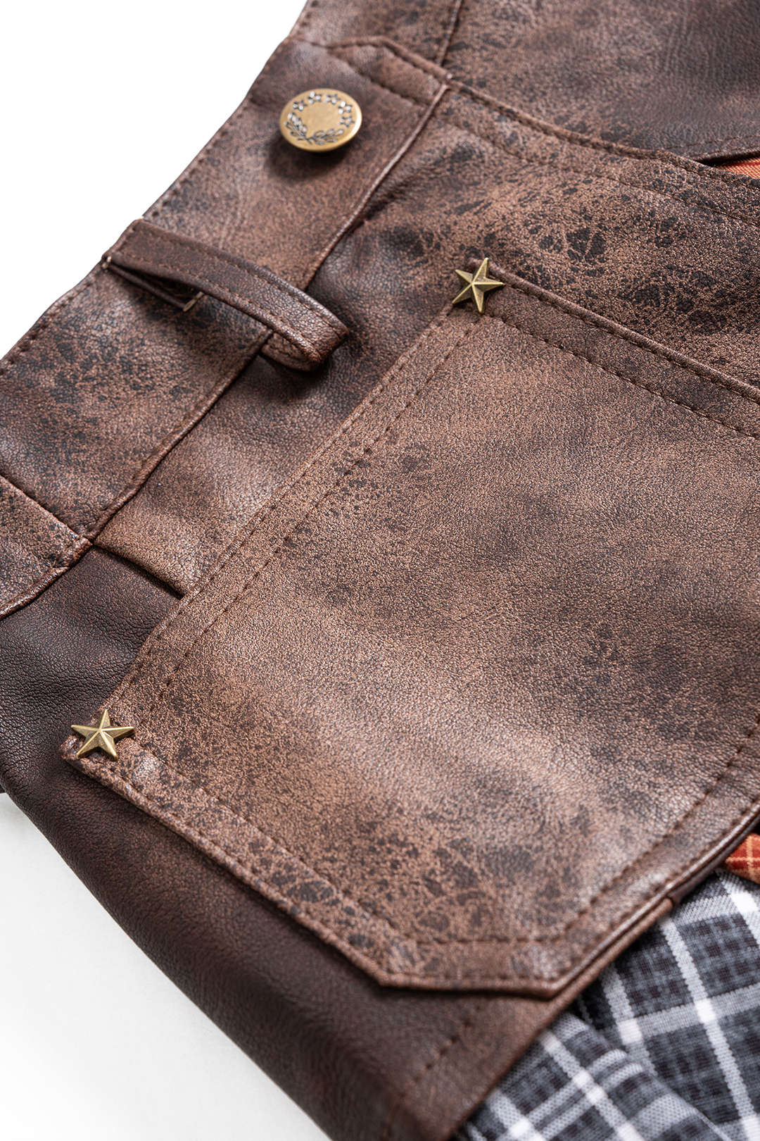 Plaid Contrast Print Faux Leather Patchwork Asymmetrical Hem Skirt