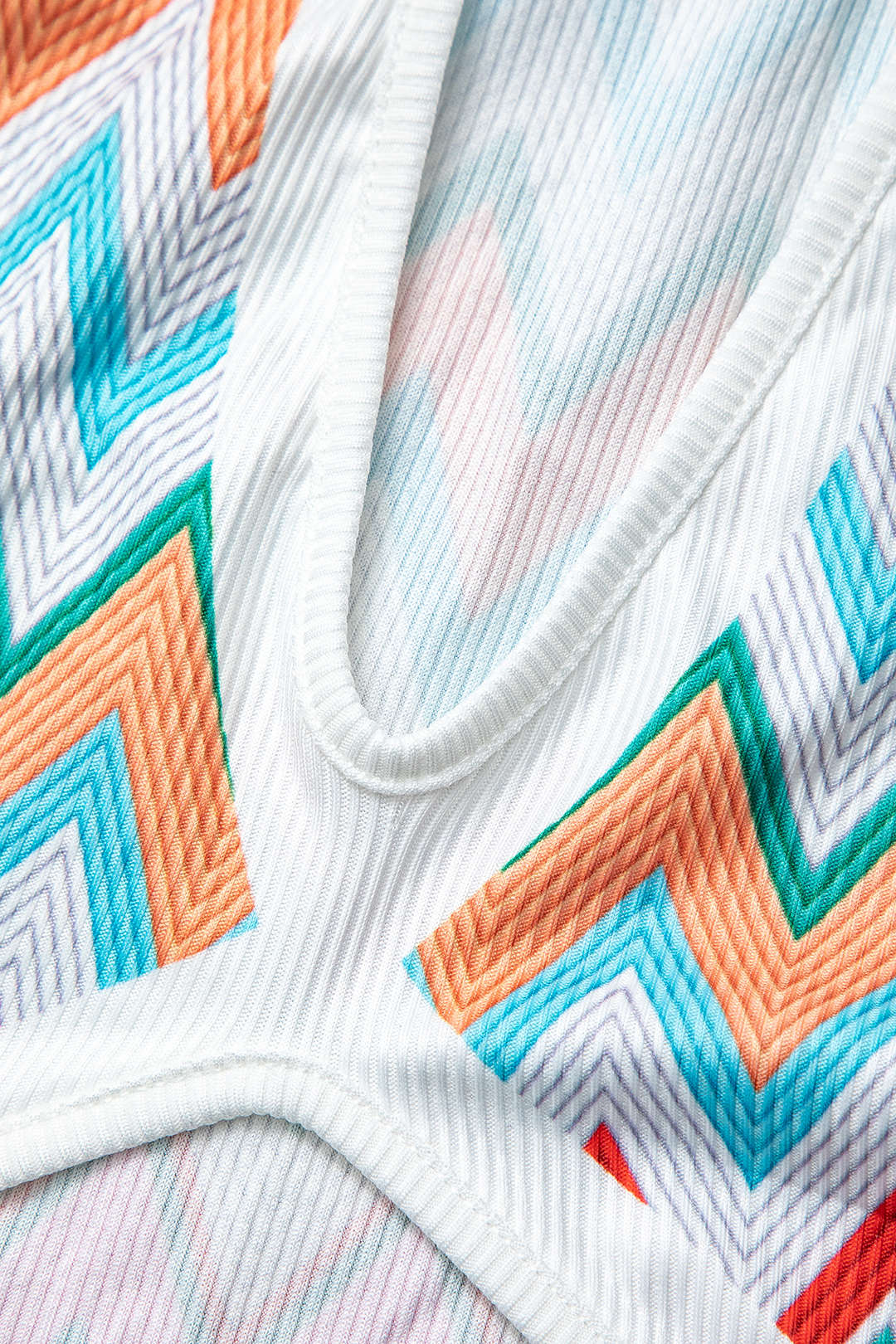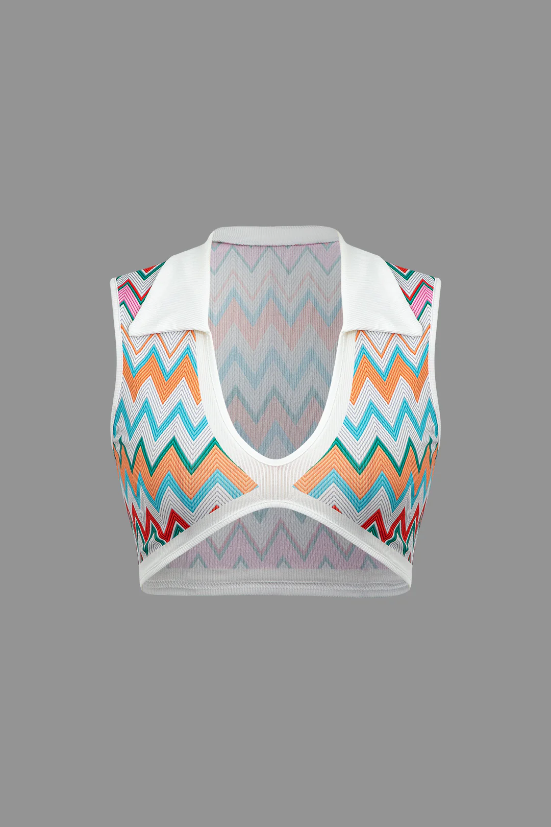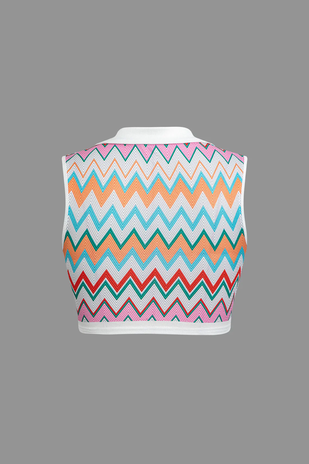 Contrasting V-neck Cropped Knit Tank Top and Split Maxi Skirt Set