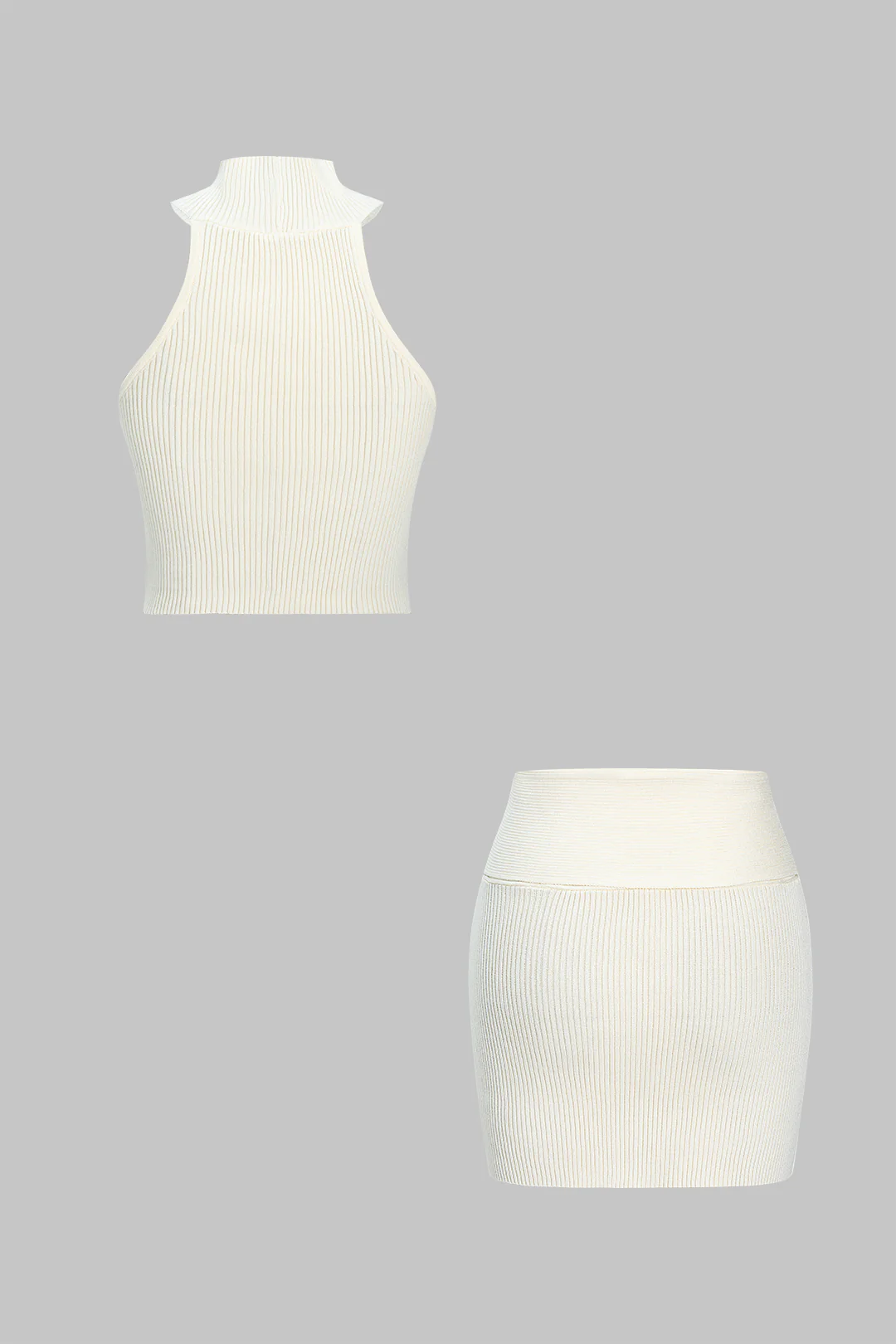 Knit Metallic Decorated Cut-Out Camisole Top and Mini Skirt Set