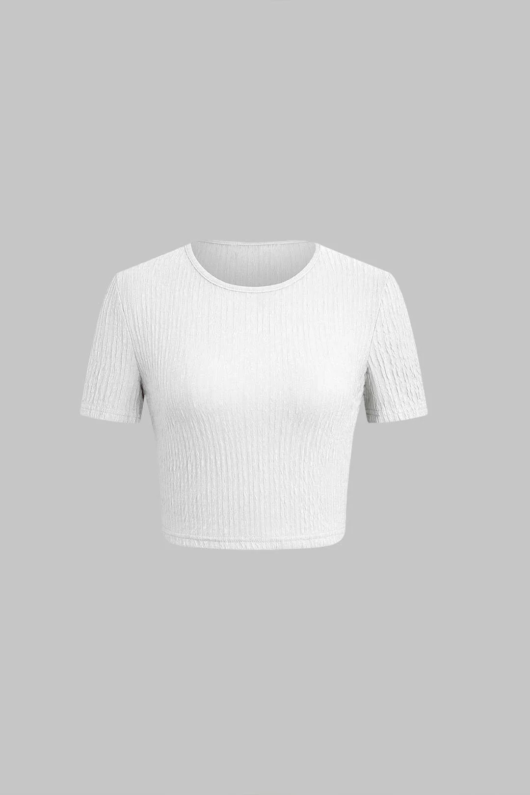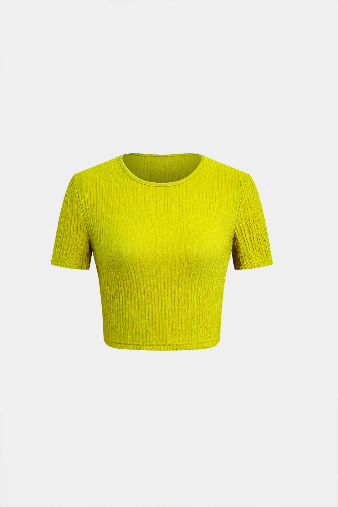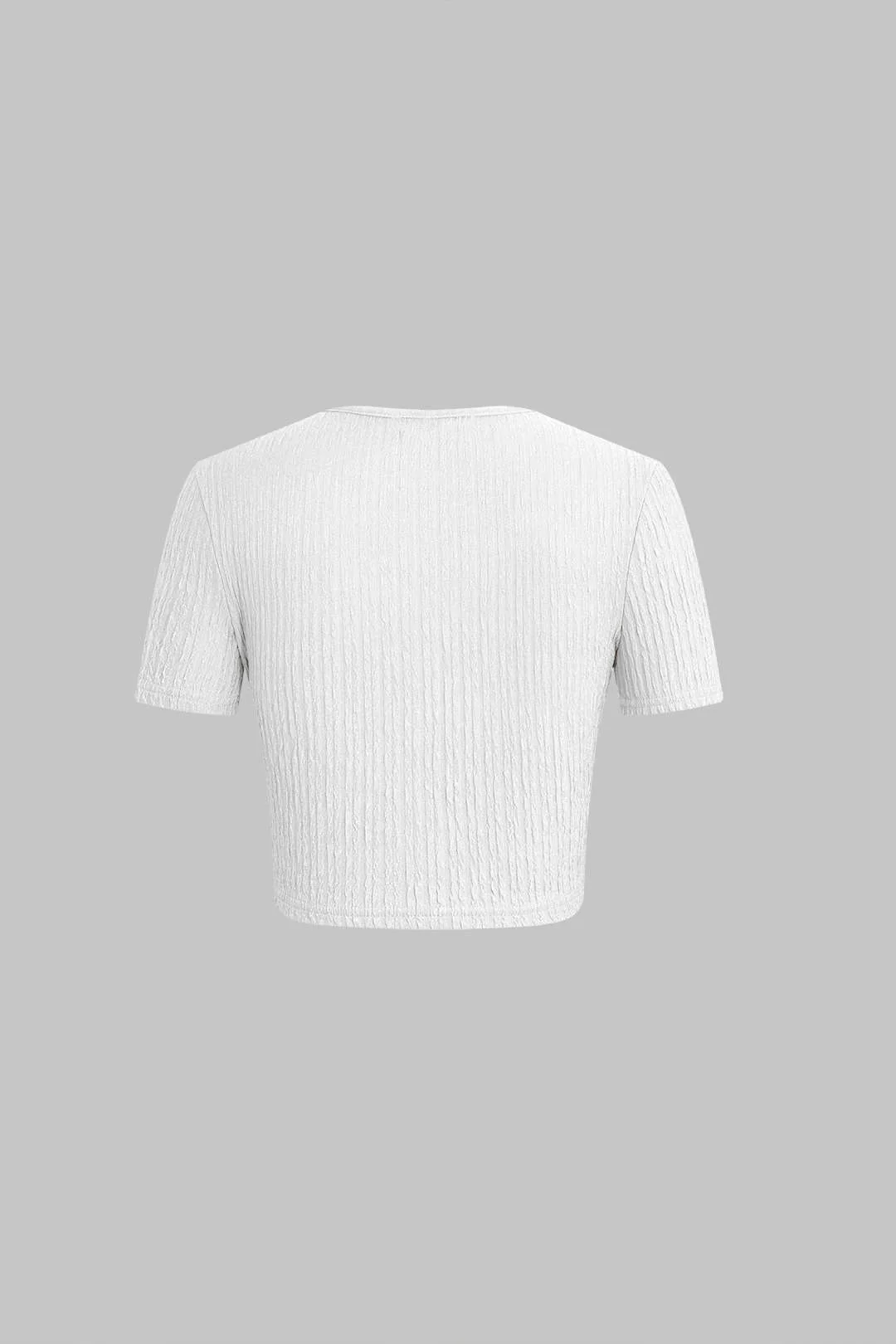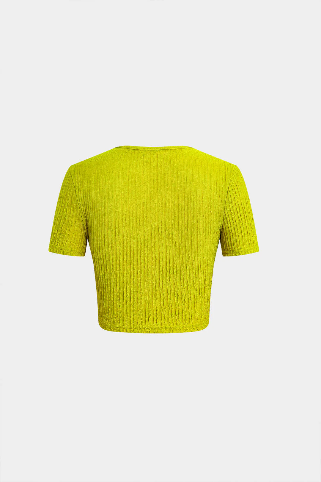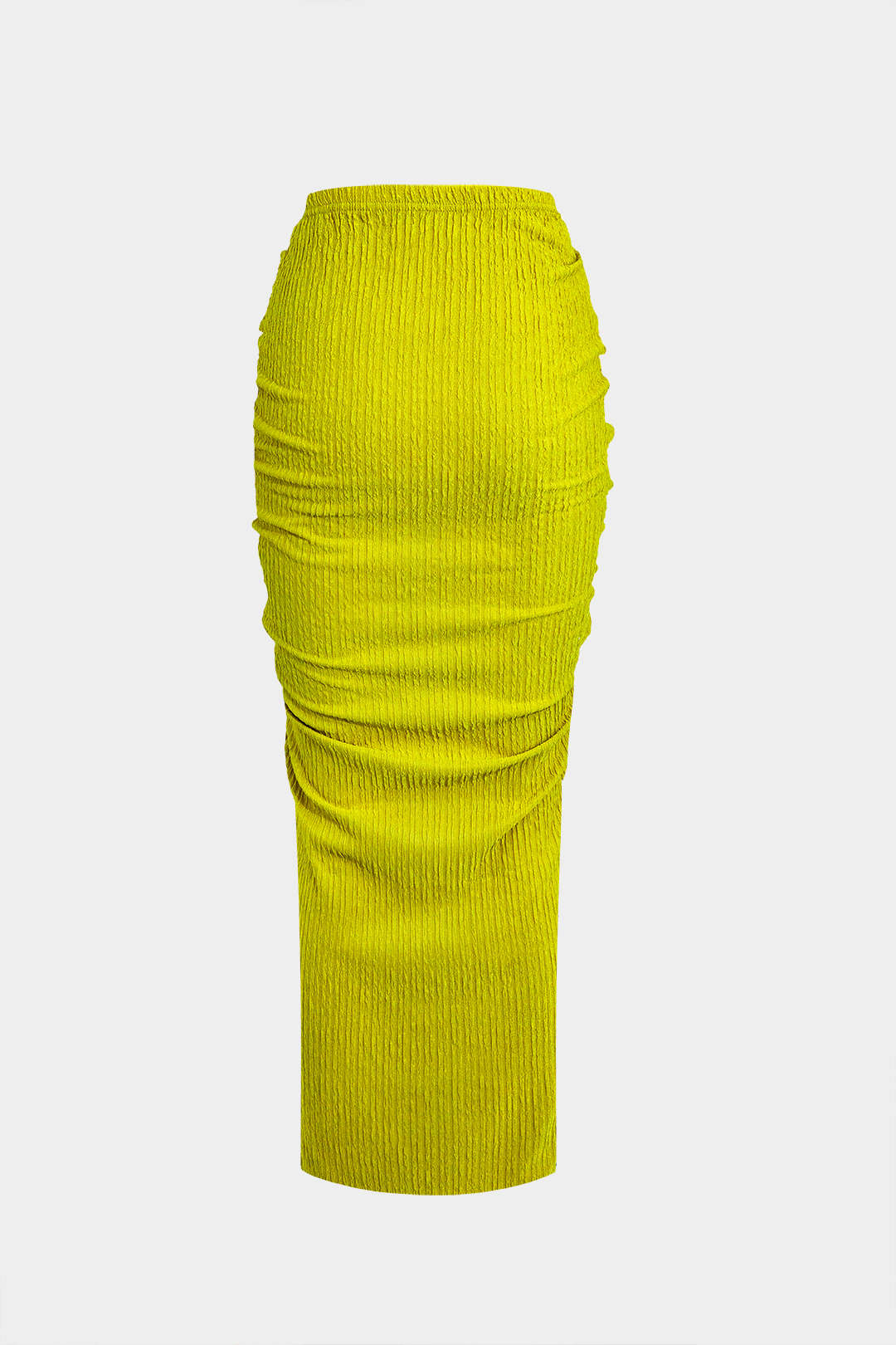 Textured Cropped Top and Drawstring Ruched Skirt Outfit Set