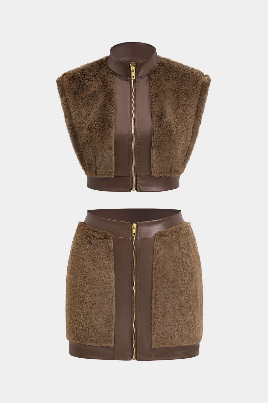 Home / SKIRTS / Faux Leather and Fur Patchwork Skirt Set
