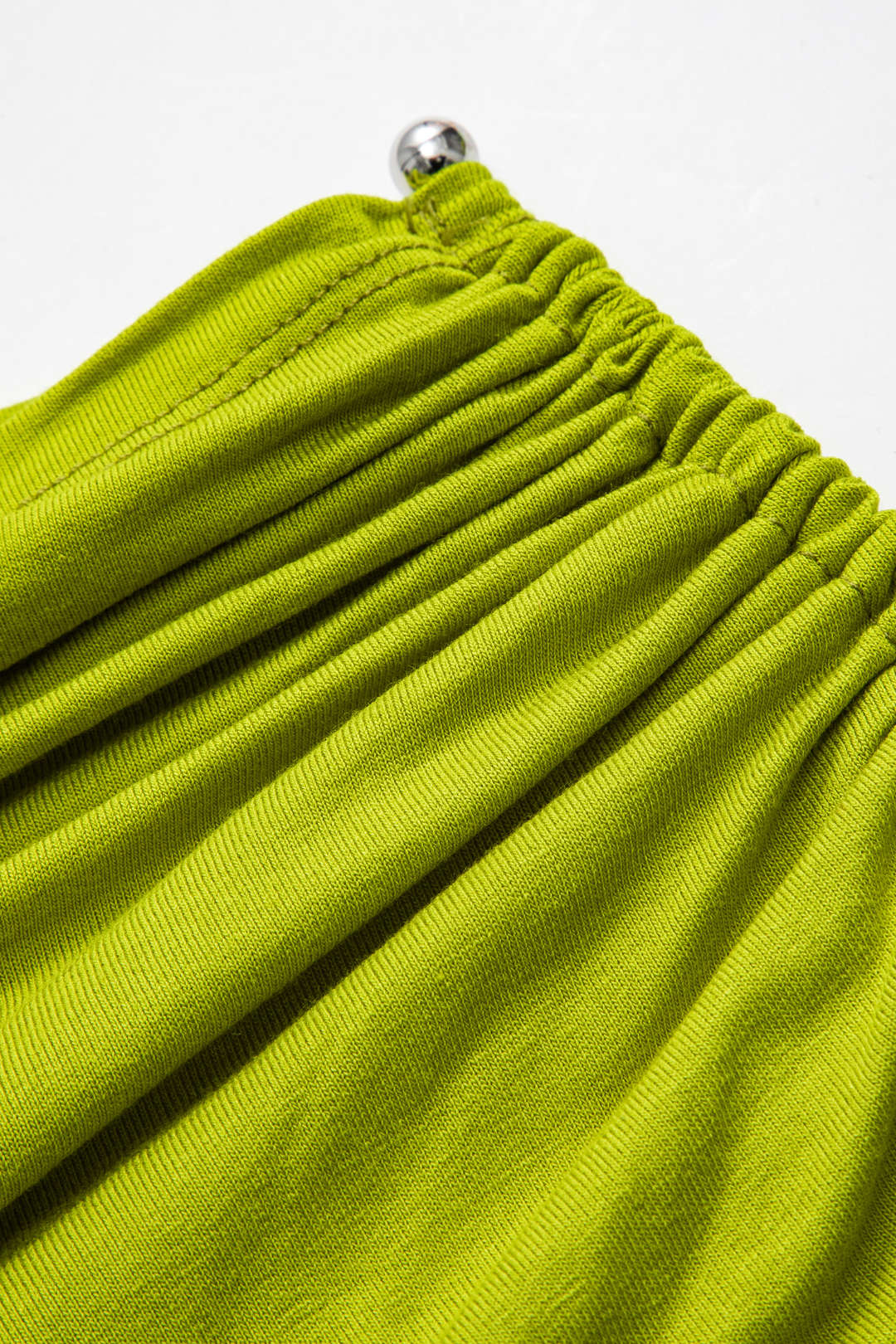 Solid Ruched Top and Metal Asymmetrical Skirt Ensemble